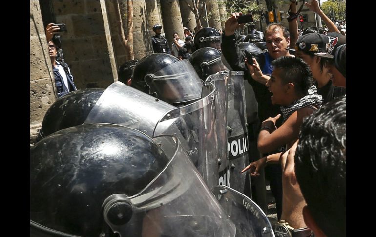 Jalisco | Cinco de los nueve detenidos fueron identificados como alumnos de la Preparatoria 10 La UdeG no respaldará a estudiantes violentos Cinco de los nueve detenidos fueron identificados como bachilleres de la Preparatoria 10 Por: EL INFORMADOR 10 de marzo de 2014 - 18:00 hs La policía de Guadalajara retuvo a nueve personas tras la agresión registrada afuera del Ayuntamiento, siete de ellos menores de edad. / GUADALAJARA, JALISCO (10/MARZO/2014).- Si los estudiantes se portaron mal, que se les castigue. La Universidad de Guadalajara no respaldará a los bachilleres que fueron retenidos por la policía tapatía, quienes causaron desmanes a las afueras del Palacio Municipal de Guadalajara. Lo anterior fue dado a conocer por el rector general, Tonatiuh Bravo Padilla, quien dijo que la convocatoria realizada por la Federación de Estudiantes Universitarios fue muy clara: iban enérgicos, pero en paz. "Algunos de ellos asumieron actitudes de provocación, pero me parece que son incidentes menores que la propia gente repudia. Yo no vi que ninguno de los universitarios se sumaran a ese tipo de acciones", dijo en un primer momento el funcionario universitario. Sin embargo, los hechos violentos se realizaron al tiempo que las autoridades universitarias llegaban a acuerdos con el Gobierno del Estado. Una vez que concluyó la rueda de prensa donde dieron a conocer la creación de una mesa de trabajo, este medio le cuestionó. -Rector, si llegara el caso de que fueran estudiantes, porque ya hay cinco detenidos, y los cinco detenidos traían credenciales de la prepa 10. ¿Qué va a pasar? -Deben ser sancionados si cometieron actos de vandalismo. Nosotros convocamos a una manifestación, apoyamos a una manifestación pacífica muy clara en cuáles deberían de ser de los métodos de lucha. Y por supuesto hago un llamado a todos los estudiantes a que se sigan manteniendo en el comportamiento que debe caracterizar a los universitarios. La Policía de Guadalajara retuvo a nueve personas tras la agresión registrada afuera del Ayuntamiento, siete de ellos menores de edad. Los retenidos fueron entregados a la Fiscalía del Estado, para que un agente del Ministerio Público dictamine cuál será su situación. El municipio los acusa por "daño a propiedad municipal" y "agresión a la autoridad". Uno de los agresores tiene 41 años, y declaró a los oficiales del municipio que "era un maestro" que "venía a cargo de un grupo". De los retenidos, a cinco de ellos se les identificó por sus credenciales de ingreso a la preparatoria número 10 de la Universidad de Guadalajara. EL INFORMADOR/ OMAR GARCÍA Temas Manifestaciones en Jalisco Transporte Público Muertes a causa del transporte público UdeG FEU Tonatiuh Bravo Padilla Recibe las últimas noticias en tu e-mail Todo lo que necesitas saber para comenzar tu día Registrarse implica aceptar los Términos y Condiciones