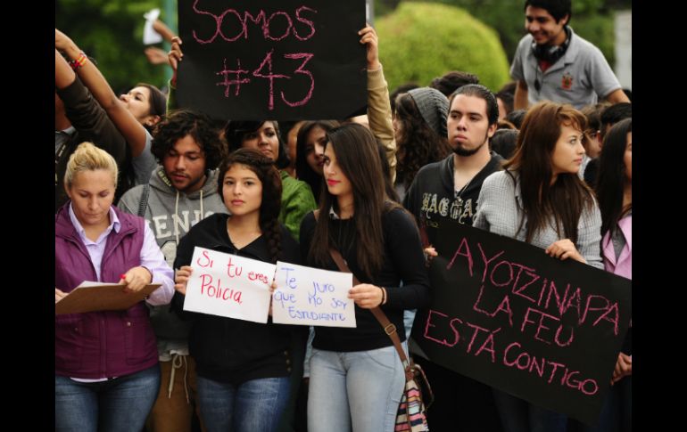 Jalisco | La casa de estudios informa que suspenderá clases mañana jueves La UdeG se suma a paro estudiantil por Ayotzinapa La casa de estudios informa que suspenderá clases mañana jueves para expresar la indignación por la desaparición de los normalistas Por: EL INFORMADOR 5 de noviembre de 2014 - 18:59 hs Estudiantes de la UdeG han realizado manifestaciones para expresar su enojo por los hecho ocurridos en Iguala. EL INFORMADOR / J. Mendoza GUADALAJARA, JALISCO (05/NOV/2014).- La representación estudiantil ante el Consejo General Universitario de la UdeG pidió sumarse por 24 horas al paro nacional convocado para expresar la indignación por los sucesos que derivaron en el asesinato de seis personas y la desaparición de cuarenta y tres estudiantes en Iguala, Guerrero el pasado 26 de septiembre. Por lo que la Universidad de Guadalajara informó que suspenderás las clases por 24 horas durante este jueves 6 de noviembre, y las reanudará el viernes 7 de noviembre a las 7:00 horas. Se detalló que durante el paro del día jueves únicamente se suspenderán las clases, por lo que todas las dependencias, escuelas preparatorias y centros universitarios se mantendrán abiertos para ofrecer el resto de sus servicios y actividades académicas. Se aclaró que las actividades administrativas, de investigación, de difusión científica y cultural, así como los servicios de bibliotecas, los auditorios, los laboratorios y todas las demás instalaciones, continuarán en funcionamiento. Finalmente se dijo que las actividades previstas para el sábado 8 de noviembre se mantienen sin cambio alguno, en particular la aplicación de la Prueba de Aptitud Académica (PAA) para los aspirantes a licenciatura de los centros universitarios metropolitanos y regionales, que se realizará como ha sido programada. Temas Educación UdeG Guerrero Recibe las últimas noticias en tu e-mail Todo lo que necesitas saber para comenzar tu día Registrarse implica aceptar los Términos y Condiciones