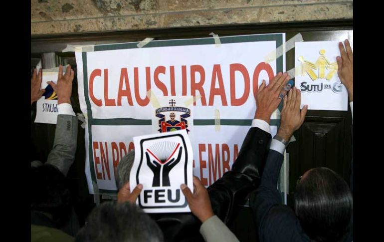 Jalisco | Arriban a los recintos para marcar el inicio de la resistencia civil pacífica La UdeG “toma” Casa Jalisco y Palacio de Gobierno simultáneamente Dirigentes, profesores y estudiantes arribaron a los recintos para marcar el inicio de la resistencia civil pacífica Por: EL INFORMADOR 1 de diciembre de 2010 - 10:36 hs Miembros de la UdeG clausuraron simbólicamente Casa Jalisco, al colocar calcomanías alusivas en sus puertas. E. PACHECO / GUADALAJARA, JALISCO (01/DIC/2010).- Dirigentes, profesores y estudiantes de la Universidad de Guadalajara ( UdeG) "tomaron" simultáneamente Palacio de Gobierno y Casa Jalisco, acciones que marcan el reinicio en las protestas para exigir al Ejecutivo estatal la entrega de los recursos que este adeuda a la casa de estudios, y luego de la tregua en las movilizaciones que la Secretaría de Gobernación federal ( Segob) solicitará hacer a la UdeG para facilitar su mediación en el conflicto. En Palacio de Gobierno, alrededor de mil bachilleres de distintos planteles de la casa de estudios permanecen afuera del recinto desde las 10:00 horas, mientras interpretan variadas canciones de mariachi cuya letra han modificado en sentido de protesta. En ese lugar, encabezan la "resistencia civil pacífica", la directora del SEMS, Ruth Padilla Muñoz, el recién electo presidente de la Federación de Estudiantes Universitarios (FEU), Marco Núñez Becerra, y el secretario general del Sindicato Único de Trabajadores de la Universidad de Guadalajara (SUTUDEG), Francisco Díaz Aguirre. Por otra parte, en Casa Jalisco, integrantes de los seis centros universitarios que tiene la UdeG en la Zona Metropolitana de Guadalajara (unos 500), encabezados por el secretario general del Sindicato de Trabajadores Académicos de la UdeG (STAUdeG), Roberto López González, "clausuraron" simbólicamente el despacho localizado sobre la Avenida Manuel Acuña, y en el cual se manifestaron 39 veces durante la primera etapa de movilizaciones, antes de la tregua solicitada por la Segob. Ahí, una comitiva liderada por López González cerró simbólicamente el acceso al recinto al colocar en sus puertas una serie de calcomanías con las leyendas "clausurado" y "en proceso de embargo", rodeados de otras imágenes con emblemas de gremios universitarios. Después de la "clausura", el secretario general del STAUdeG dijo que es inaceptable el ofrecimiento hecho por el mandatario estatal Emilio González Márquez, al condicionar la entrega de recursos a la ampliación de infraestructura a través del Comité Administrador del Programa de Construcción de Escuelas. También reprochó que el titular del Ejecutivo indique a la Universidad en dónde debe construir los centros universitarios. Acompañaron la protesta los rectores de los centros universitarios de Arte, Arquitectura y Diseño, de Ciencias de la Salud, y del de Ciencias Biológicas y Agropecuarias. Tanto en Palacio de Gobierno como en Casa Jalisco, se prevé que la manifestación se prolongue hasta poco depués del mediodía. A diferencia de la primera etapa de movilizaciones en esta ocasión cada campus y dependencia universitaria participante arribó al sitio de forma independiente, lo que provocó un incremento en el tráfico vehicular, dado que en varios casos los alumnos llegaron de forma aislada. EL INFORMADOR / RAFAEL ZAPATA Temas Manifestaciones en Jalisco Gobierno del Estado Presupuesto UdeG Lee También Dónde ver EN VIVO Charros de Jalisco vs Águilas de Mexicali por la serie inaugural de la LMP Ratifican a Consuelo González como magistrada del Supremo Tribunal de Justicia de Jalisco Rechazan ratificar a Espinosa Licón como magistrado del Supremo Tribunal de Justicia Lemus respalda a productores de maíz y reconoce su reclamo 'por un precio justo' Recibe las últimas noticias en tu e-mail Todo lo que necesitas saber para comenzar tu día Registrarse implica aceptar los Términos y Condiciones