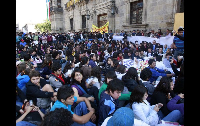 Jalisco | El rector acusa al Gobierno de querer controlar las obras que construye la Universidad La Universidad de Guadalajara planea endeudarse para pagar los aguinaldos El rector acusa al Gobierno de querer controlar las obras que construye la Universidad Por: EL INFORMADOR 2 de diciembre de 2010 - 02:03 hs Estudiantes de preparatoria se sentaron afuera de Palacio de Gobierno en una de las movilizaciones de ayer. A. GARCÍA / GUADALAJARA, JALISCO (02/DIC/2010).- Aunque no señaló el monto, el rector de la Universidad de Guadalajara (UdeG), Marco Antonio Cortés Guardado, dijo que la dirigencia de la casa de estudios evalúa la posibilidad de solicitar un crédito para hacer frente a sus compromisos económicos de fin de año, como el pago de salarios y aguinaldos. “Yo creo que vamos a tener que solicitar algún apoyo financiero de la banca privada; vamos a ver dónde podemos obtener ese apoyo”. Esto se da luego de que ayer miércoles la UdeG reinició su campaña de protestas tras no haber llegado a un acuerdo en la entrega de 210 millones de pesos (MDP) que el Gobierno de Jalisco otorgaría a la Universidad para dar solución al conflicto presupuestario. Previamente, el Ejecutivo condicionó dicha entrega a que se destine exclusivamente a la ampliación de infraestructura a través del Comité Administrador del Programa Estatal de Construcción de Escuelas (CAPECE); aspecto que la UdeG rechazó previamente. Cortés Guardado dijo que la propuesta que estaba sobre la mesa hasta la tarde del martes consistía en la entrega de la mitad de los 210 MDP de forma líquida y la otra mitad a través de CAPECE, “pero el gobernador quiere condicionar qué obras hace CAPECE y todavía más, quiere etiquetar los recursos líquidos que nos daría”. En ese tenor el rector sostiene que la UdeG tiene su propio diagnóstico en torno a sus necesidades y que dar pormenores “absurdos” sobre en qué se utilizarían dichos recursos atenta contra la autonomía universitaria. Anunció que además de las movilizaciones, la Universidad valorará otras vías de protesta y velará por la posibilidad de que “la comunidad universitaria nacional” apoye la campaña de la máxima casa de estudios de Jalisco. Agregó que el Ejecutivo estatal se equivoca si considera que la proximidad de las vacaciones de invierno debilitará el ánimo de los udegeístas. Manifestantes “clausuran” Casa Jalisco Durante las dos manifestaciones de la Universidad de Guadalajara (UdeG) de ayer por la mañana, la comitiva liderada por Roberto López González, secretario general del Sindicato de Trabajadores Académicos de la UdeG (STAUdeg), cerró simbólicamente el acceso a Casa Jalisco al colocar en sus puertas una serie de calcomanías con las leyendas “clausurado” y “en proceso de embargo”, que fueron rodeadas de otras imágenes con emblemas de los distintos gremios universitarios. Después de la “clausura”, el secretario calificó de “inaceptable” el ofrecimiento hecho por el mandatario estatal, Emilio González Márquez, de condicionar la entrega de recursos a la UdeG a la ampliación de infraestructura a través del Comité Administrador del Programa Estatal de Construcción de Escuelas (CAPECE). También reprochó que el titular del Ejecutivo quiera señalar a la Universidad en dónde debe construir los nuevos centros universitarios metropolitanos que prevé edificar la casa de estudios. Acompañaron la protesta los rectores de los centros universitarios de Arte, Arquitectura y Diseño (CUAAD), de Ciencias de la Salud (CUCS), y del de Ciencias Biológicas y Agropecuarias (CUCBA). Tanto en Palacio de Gobierno como en Casa Jalisco, las manifestaciones se prolongaron desde las 10:00 horas hasta poco después del mediodía. A diferencia de la primera etapa de movilizaciones, en esta ocasión cada campus y dependencia universitaria participante arribó al sitio de forma independiente, lo que provocó un incremento en el tráfico vehicular, dado que en varios casos los alumnos llegaron de forma aislada llevando su propio vehículo al sito de la protesta. Las manifestaciones continuarán hoy jueves según informaron autoridades universitarias. Temas Manifestaciones en Jalisco Educación local UdeG Presupuesto UdeG Lee También Mantendrán maiceros protesta en caseta de Ocotlán Autoridades estatales intervienen Comisaría de La Huerta Hay buena disposición para avalar la reforma al Poder Judicial en Jalisco: Zamora Protesta de trabajadores del SAT podría traer estas consecuencias para los contribuyentes Recibe las últimas noticias en tu e-mail Todo lo que necesitas saber para comenzar tu día Registrarse implica aceptar los Términos y Condiciones