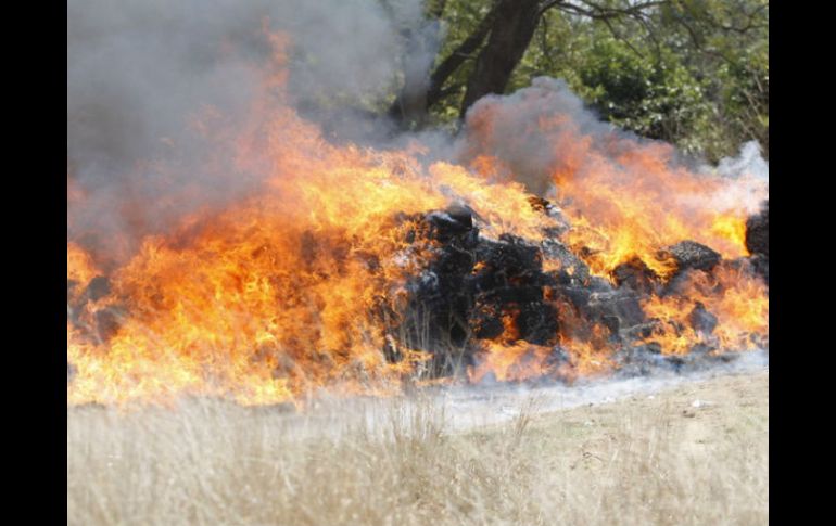Jalisco | Las plantíos estaban ubicados en 115 hectáreas La V Región Militar destruyó 882 plantíos de mariguana Los plantíos estaban ubicados en 115 hectáreas Por: EL INFORMADOR 6 de octubre de 2013 - 18:24 hs La mariguana sigue siendo la droga más destruida y asegurada por soldados de la V Región Militar. ARCHIVO / ZAPOPAN, JALISCO (06/OCT/2013).- La mariguana sigue siendo la droga más destruida y asegurada por soldados de la V Región Militar. La citada región tiene presencia en las entidades de Aguascalientes, Zacatecas, Nayarit, Colima y Jalisco. La comandancia de la V Región Militar, encabezada por el general de División Diplomado de Estado Mayor, Daniel Velasco Ramírez, informó en un comunicado de prensa, que fueron destruidos 882 plantíos de mariguana, sembrados en 115 hectáreas. También fueron asegurados cuatro mil 739 kilos del enervante, 12 de semilla, 11 secaderos de mariguana, y campamento. Además, de 284 sembradíos de amapola, encontrados en un terreno de aproximadamente 19 mil metros cuadrados. Números de la V Región Militar: 52 personas sorprendidas en actos delictivos. Un kilogramo de crystal, y 58 dosis. 69 dosis de cocaína. 44 dosis de mariguana. 18 armas de fuego. 116 cargadores para diversas armas. Dos mil 728 balas de diferentes calibres. Mil 550 pesos. Dos tomas clandestinas. Nueve mil 430 litros de gasolina. 32 mil 300 litros de diésel. Nueve equipos de radiocomunicación. 52 vehículos. Temas Seguridad Ejército Mariguana Recibe las últimas noticias en tu e-mail Todo lo que necesitas saber para comenzar tu día Registrarse implica aceptar los Términos y Condiciones