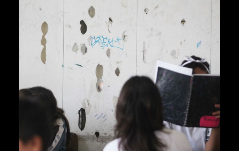 Grafitti y agujeros en paredes y techos son la constante en los salones de la Luis Donaldo. /