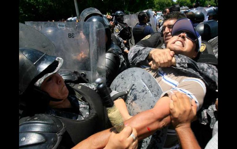Jalisco | Cuestionan actuar de autoridades durante manifestación Lamenta Sección 16 del SNTE falta de tolerancia del Ejecutivo Profesores que se manifestaron en la Glorieta de la Normal, fueron retirados violentamente por elementos antimotines el pasado lunes Por: EL INFORMADOR 30 de junio de 2010 - 05:18 hs Un docente fue detenido por supuestas faltas administrativa durante la manifestación. A. GARCÍA / GUADALAJARA, JALISCO (30/junio/2010).- Luego de que la tarde del pasado lunes cerca de 150 profesores de telesecundaria que se manifestaban en la Glorieta de la Normal fueran replegados a empujones por elementos antimotines con saldo de un maestro detenido, el líder de la Sección 16 del Sindicato Nacional de Trabajadores de la Educación ( SNTE), Fleury Carrasquedo Monjarás, lamentó la falta de tolerancia que en esta ocasión manifestaron autoridades del Gobierno del Estado, del que dijo, siempre había permitido la libre manifestación de los trabajadores de la educación. “Si en el pasado hubo una actitud de tolerancia, de respeto de la autoridad, me parece que en esta ocasión no la hubo, tanto que en las otras manifestaciones que se han dado por parte del mismo grupo de compañeros en el Congreso del Estado, Palacio de Gobierno y demás, fueron en términos de su inconformidad por algunas situaciones en su legítimo derecho de expresión, pues hoy no contaron con esa actitud de tolerancia por parte de la autoridad”. Y es que, el profesor Arturo Contreras, quien reclamaba la propiedad de una camioneta tipo combi que fue retirada del lugar por elementos de Vialidad para restablecer el tránsito sobre Avenida Alcalde, quedó detenido por presuntamente haber incurrido en varias faltas administrativas durante la manifestación, después de haber sido señalado por un elemento policiaco. Tras haber sostenido una reunión con autoridades magisteriales de dicho nivel educativo, Carrasquedo Monjarás agregó que las demandas de los profesores de telesecundaria fueron incluidas en el plan general de negociación sindical. Entre otras demandas, los maestros de telesecundaria piden que se les homologue el sueldo con los docentes de secundarias técnicas y generales, mejoras en las instalaciones educativas, diversos tipos de material didáctico y que se les garanticen las condiciones técnicas para poder operar su programa educativo. Temas Manifestaciones en Jalisco Gobierno del Estado SNTE Recibe las últimas noticias en tu e-mail Todo lo que necesitas saber para comenzar tu día Registrarse implica aceptar los Términos y Condiciones