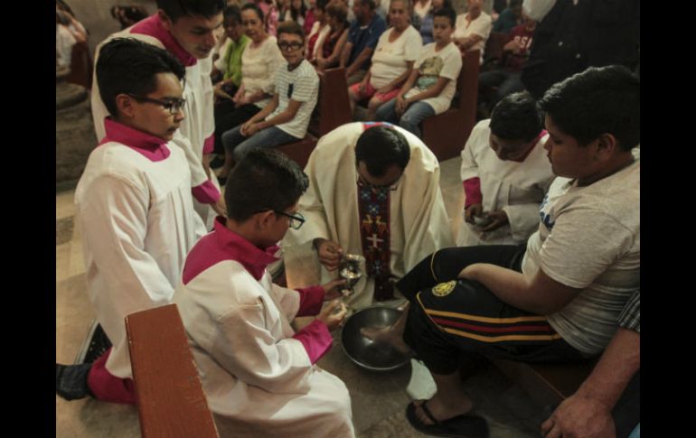 GUADALAJARA, JALISCO (13/ABR/2017).- En el templo de San Sebastián de Analco no cabe ni un alma más. Está lleno de fieles que acuden a misa para recordar la última cena de Jesús y sus horas finales de vida.Todas las figuras religiosas están cubiertas con mantos púrpura, están de luto. El olor a incienso inunda el aire y hace estornudar a algunos mientras que el organista toca las primeras notas de la tarde.La melodía es acompañada y por el coro que entona letras solemnes y más melancólicas que otros días pues recuerdan el sacrificio de nuestro Señor que murió por nuestros pecados. El acto de amor más grande.Durante la última cena, cuando el diablo ya se había apoderado del corazón de Judas Iscariote, Jesús ya era consciente de que su padre había puesto en sus manos todas las cosas. Se levantó de la mesa, se quitó el manto, tomó una toalla y echó agua a una jofaina para lavar los pies a sus discípulos.Este gesto simbólico del lavatorio de pies significa la vida y la muerte de Jesús, las cuales se presentan como un acto único. El Señor realiza el trabajo más humilde, solo realizado por esclavos en aquel entonces a fin de hacer dignos a sus discípulos de sentarse junto a él en la mesa.Cada Jueves Santo, los sacerdotes de las iglesias católicas del mundo realizan este acto. En esta ocasión, el padre de San Sebastián de Analco, José Marcos Castellón, bajó con los fieles y lavó los pies a 12 jóvenes de la comunidad."Hay que recordar el amor infinito del padre celestial que nos dio a su hijo Jesucristo, quien se ofreció como sacrificio inmaculado", indicó."Jesús no solamente se quedó junto a nosotros, quiere ser nuestro alimento y ha querido quedarse en nosotros. Por eso esta tarde conmemoramos a la institución de la eucaristía. Cristo se queda para ser en el pan eucarístico el alimento para nuestra salvación".Algunos de los asistentes tienen lágrimas en los ojos por la emoción. Dicen que las actividades de Semana Santa en el barrio reanimaron el fervor religioso de muchos.Este viernes se celebrarán las actividades más importantes de todas, por la mañana un viacrucis y por la noche tendrá lugar la Primera Gran Procesión del Silencio y la Vía Dolorosa con cinco andas y el mismo número de cofradías.La primera Gran Procesión del Silencio y la Vía Dolorosa será del 6 al 16 de abril en el Barrio de Analco. Puede consultar más información en semanasantaenguadalajara.com.EL INFORMADOR / VIRGINIA ARENAS