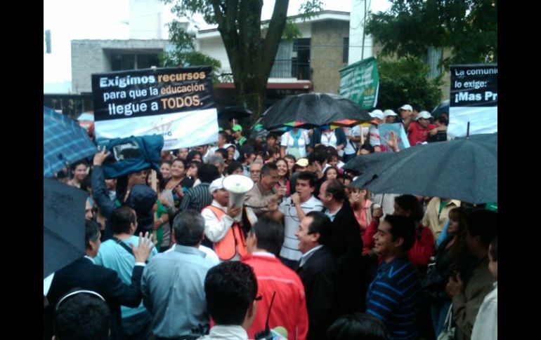 Jalisco | Ponen ultimátum al Ejecutivo para responder Le llueve a la UdeG Una movilización estudiantil que partiría desde Avenida México y Chapultepec tuvo que modificarse a causa del clima Por: EL INFORMADOR 9 de septiembre de 2010 - 01:35 hs Cerca de 400 estudiantes de la Preparatoria Regional de Tonalá se manifestaron afuera de Casa Jalisco. R. ZAPATA / GUADALAJARA, JALISCO (09/SEP/2010).- La lluvia no impidió que cerca de 400 estudiantes de la Preparatoria Regional de Tonalá se manifestaran la mañana de ayer a las afueras de Casa Jalisco, en lo que fue el sexto día de marchas y el décimo desde que la Universidad de Guadalajara ( UdeG) comenzó con su campaña para exigir que se atiendan sus demandas presupuestarias. Y es que debido a las condiciones climatológicas, el punto de concentración de los estudiantes cambió de la Plaza de la República en Avenida México y Chapultepec, al cruce de Manuel Acuña y Rubén Darío, por lo que en esta ocasión la marcha fue de tan sólo una cuadra. Una vez instalado el contingente a las afueras del recinto, debajo de un paraguas, el director de la Preparatoria de Tonalá, Arturo Flores Gómez, pidió al gobernador del Estado, Emilio González, recordar que él es egresado de la UdeG y que gracias a su paso por la casa de estudios logró alcanzar “la primera posición del Estado”. También bajo un paraguas, Roberto López González, secretario general del Sindicato de Trabajadores Académicos de la UdeG (STAUdeG), aseguró que la lluvia que se prolongó durante gran parte de día no impidió que los universitarios salieran a las calles. Reclamó que el mandatario haya acudido más temprano a un programa radiofónico para, dijo, descalificar la lucha de la UdeG. En ese sentido, el líder del STAUdeG señaló que si la construcción de cada preparatoria cuesta 60 millones de pesos (MDP), es porque en ese precio las construye el Comité Administrador del Programa Estatal de Construcción de Escuelas ( CAPECE), que depende del Gobierno del Estado. A la puerta de casa Jalisco, frente a personal de Asuntos del Interior del Gobierno del Estado, el director de la Preparatoria de Tonalá explicó las necesidades que en materia de agua, drenaje, aulas e instalaciones eléctricas tiene el plantel que preside. Posteriormente entregó un jarro artesanal hecho de un material conocido como barro papel, que es un tipo de cerámica ecológica que puede utilizarse de forma decorativa y que fue elaborado por estudiantes del plantel que dirige. Ya que no se recibió respuesta alguna por escrito de parte del Ejecutivo, tal y como lo solicitaron los universitarios el pasado lunes, el líder del STAUdeG aseguró que si la respuesta se prolonga por más de 15 días, en términos legales eso significaría que el gobernador acepta las demandas presupuestarias de la casa de estudios, que ascienden a 520 millones de pesos (MDP). Las manifestaciones continuarán esta mañana con la movilización de estudiantes de la Preparatoria 6, que se prevé partirán de la Plaza de la República en Avenida México y Chapultepec hacia Casa Jalisco alrededor de las 09:00 horas. Que los alumnos regresen a las aulas, recomienda la SEJ “El dinero de la educación no es para espectáculos” Luego de que dirigentes de la Universidad de Guadalajara (UdeG) acusaron al titular de la Secretaría de Educación Jalisco (SEJ), Antonio Gloria Morales, de desconocer las necesidades educativas del Estado, el secretario reviró que los recursos presupuestados para la educación no se pueden destinar al negocio de los espectáculos. “Comprendo que se requieren más preparatorias, comprendo que muchos jóvenes se están quedando sin poder estudiar la ‘prepa’, comprendo que hay un gran interés por el negocio de los espectáculos y comprendo que el dinero de la educación no se puede destinar a eso”. Hizo un llamado a que los jóvenes de preparatoria no pierdan más tiempo en las calles manifestándose, “porque esos son temas financieros que se resuelven en la mesa, con propuestas, con ánimo de sumar, de buscar en los números cómo sacar lo que se requiere para la educación, no para espectáculos ni para negocios”. Gloria Morales comentó que los dirigentes de la UdeG se deberían reunir con los funcionarios de la Secretaría de Finanzas para que juntos encuentren soluciones a las demandas presupuestarias de la casa de estudios. En ese sentido, dijo que se debe reactivar la mesa de negociaciones realizada a principios de año entre autoridades universitarias con funcionarios del Ejecutivo estatal. Desestimó que las marchas estudiantiles que la casa de estudios realiza desde la semana pasada sean “clases de civismo”, tal y como dijera el secretario general del Sindicato de Trabajadores Académicos de la UdeG, Roberto López González. “Son clases mal impartidas porque lo único que he conocido es que muchos de los muchachos que están en las marchas ni siquiera saben a lo que van”. Quitarle las butacas al TELMEX “Mi solidaridad es con los chavos de ‘prepa’ que no tienen ni siquiera mesa-bancas ¿Por qué no le quitamos butacas al TELMEX y las ponemos en los salones donde faltan? ¿Por qué no dejamos de cambiar alfombras en el Teatro Diana y mejor lo invertimos en laboratorios? Porque la Universidad tiene dinero, lo que pasa es que no lo está gastando en educación”, expresó el gobernador del Estado, Emilio González, en una entrevista radiofónica durante la mañana de ayer. Aseguró que está de acuerdo con la construcción del Centro Cultural Universitario (CCU), pero que no le queda claro en qué consiste el proyecto en su totalidad: “Lo que sé es que ahí va a haber centros comerciales, cines, torres de departamentos... ¿no estaremos dando dinero del pueblo para negocios personales?”. Y agregó, que, según sus estimaciones, 80% de la superficie construida del CCU será dedicada a negocios. Temas SEJ Educación local UdeG Emilio González Lee Ta