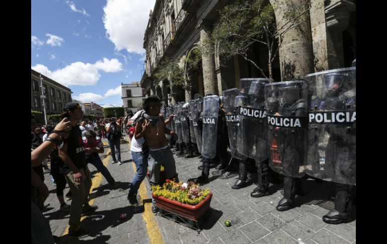 Jalisco | Los menores de edad fueron liberados por considerar que no cometieron faltas graves Liberan a detenidos por disturbios en Palacio Municipal Los menores de edad fueron liberados por considerar que no cometieron faltas graves Por: EL INFORMADOR 11 de marzo de 2014 - 19:28 hs Ayer, manifestantes arrojaron huevos y botellas a los antimotines afuera de Palacio Municipal. ARCHIVO / GUADALAJARA, JALISCO (11/MAR/2014).- Nueve personas fueron detenidas este lunes durante la manifestación de estudiantes de la Universidad de Guadalajara en rechazo a las condiciones del servicio del transporte público en el estado; lo anterior, tras una confrontación verbal que terminó en agresiones entre los manifestantes y antimotines de Guadalajara, quienes resguardaban las instalaciones del Palacio Municipal de Guadalajara. Tras la protesta de estudiantes y autoridades universitarias que tuvo su epicentro en la Plaza Liberación de Guadalajara hacia las 11:00 horas, algunos asistentes se congregaron afuera del edificio del Ayuntamiento de Guadalajara, en el cruce de 16 de Septiembre e Hidalgo. Los estudiantes reclamaron a las autoridades por las muertes del transporte público y tras los reclamos siguieron las agresiones: de parte de los jóvenes, al arrojar huevos y botellas a los antimotines; y de los gendarmes, uno de ellos le dio con una macana en la cabeza a un manifestante. La reyerta concluyó con la detención de nueve personas, siete de ellas menores de edad: Emanuel, de 16 años, Jesús Eduardo, de 16; Carlos, de 16; Ángel, de 16; Marco, de 17; Jaime, de 15; y Juan Iván, de 17 años. Además hubo dos adultos detenidos: Jonathan Alberto Panecatl Ponce, de 18 años; y Pablo Pichardo Flores, de 41 años. Todos los detenidos fueron entregados a la Fiscalía señalados por daños a las cosas; sin embargo, el mismo lunes fueron liberados, los siete menores fueron liberados por considerar que no fueron faltas graves las cometidas y fueron entregados a sus padres; los dos adultos también fueron liberados, aunque con las reservas de ley, porque nadie presentó querella en su contra. Aunque están libres, no están impunes aún pues las autoridades integran las averiguaciones de los casos. Temas Seguridad Manifestaciones en Jalisco Detenidos en Jalisco Fiscalía de Jalisco (FGE) Recibe las últimas noticias en tu e-mail Todo lo que necesitas saber para comenzar tu día Registrarse implica aceptar los Términos y Condiciones