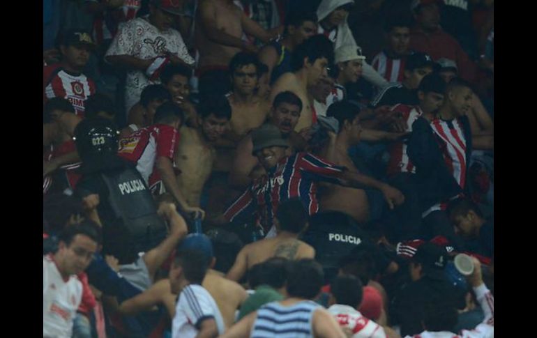 Jalisco | Los acusados consiguen la fianza por la falta de pruebas para acusarlos de homicidio Liberan bajo fianza a dos porristas Los acusados consiguen la fianza por la falta de pruebas para acusarlos de homicidio calificado Por: EL INFORMADOR 3 de abril de 2014 - 17:56 hs Los detenidos participaron en la trifulca suscitada durante el Clásico Tapatío. ARCHIVO / GUADALAJARA, JALISCO (03/ABR/2014).- Dos de los porristas del equipo de Guadalajara que fueron consignados ante el Juzgado Quinto de lo Penal, por los disturbios cometidos en el estadio Jalisco, el 22 de marzo de 2014, obtuvieron su libertad debido al pago de una fianza. Los liberados son Miguel Ángel González Pérez, y Luis Antonio Jiménez Moreno, ellos consiguieron su libertad debido a la falta de pruebas para acusarlos por el delito de homicidio calificado en grado de tentativa. Sin embargo, los otros seis porristas detenidos junto con los liberados, se encuentra en el penal de Puente Grande, en espera que se les resuelva su situación jurídica, en el Juzgado mencionado. Por otra parte, Ernesto Navarrete López, de 23 años, Alejandro Buenrostro Villagrán, de 28 años y Anthony Ismael Hernández Hernández, de 18 años, recibieron la auto de formal prisión por los delitos de homicidio en grado de tentativa, pandillerismo y delitos cometidos contra representantes de la autoridad. Ellos participaron también en la trifulca suscitada durante el encuentro deportivo. Navarrete López se congratuló en una cuenta de red social, por las agresiones contra elementos de la Policía tapatía, que estaban a cargo de la seguridad, cuando se disputaba el clásico tapatío del futbol, en el estadio Jalisco. Temas Seguridad Clásico Tapatío Detenidos en Jalisco Policía de Guadalajara Recibe las últimas noticias en tu e-mail Todo lo que necesitas saber para comenzar tu día Registrarse implica aceptar los Términos y Condiciones