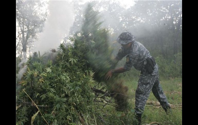 Jalisco | Municipio de Zapotlanejo Localizan plantíos de mariguana Se presume que fueron destruídas al menos 83 mil 600 plantas Por: EL INFORMADOR 13 de julio de 2010 - 05:20 hs La mariguana fue quemada en el lugar donde fue encontrada por policías estatales. ESPECIAL / ZAPOTLANEJO, JALISCO (13/JUL/2010).- Miles de dosis de mariguana ya no serán consumidas por hombres y mujeres debido a que elementos de la Secretaría de Seguridad Pública del Estado (SSPE) destruyeron 14 plantíos en el Municipio de Zapotlanejo, Jalisco. La SSPE, informó que los sembradíos fueron localizados la tarde del domingo, por policías que realizaban un recorrido de vigilancia por un predio denominado Maravillas. En ese punto, además se encuentra establecido un rancho del mismo nombre, cuyas hortalizas estaban a un kilómetro de distancia de dicho predio. Durante el operativo se presume que fueron destruidas al menos 83 mil 600 plantas, la cuales estaban en una superficie aproximada de 20 mil 900 metros cuadrados. En la zona del aseguramiento, los oficiales estatales detuvieron a un hombre que se identificó como Fernando Sánchez González, de 31 años, quien fue sorprendido abonando las plantas de mariguana que oscilaban una altura de casi un metro. Al sitio donde fueron hallados los plantíos de la droga llegó un agente del Ministerio Público de la Federación a dar fe de lo localizado y lo destruido. El detenido será investigado por instancias federales. Temas Seguridad Secretaría de Seguridad Pública de Jalisco .Mariguana Recibe las últimas noticias en tu e-mail Todo lo que necesitas saber para comenzar tu día Registrarse implica aceptar los Términos y Condiciones