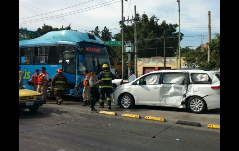 GUADALAJARA, JALISCO (29/DIC/2016).- Una unidad del Macrobús protagonizó un fuerte choque al impactarse contra una camioneta tipo familiar, reportó la Unidad de Protección Civil y Bomberos de Guadalajara.Los hechos sucedieron sobre la avenida Gobernador Curiel a su cruce con la Calle 7, en la colonia Ferrocarril, en Guadalajara, informó la corporación.Fue necesaria la valoración de 10 personas, sin embargo, sólo ocho de ellas permanecieron en el lugar para ser atendidas por paramédicos de Protección Civil.Cuatro mujeres, el chofer del macrobús y un bebé de siete meses de edad, fueron trasladados por la Cruz Verde a la Unidad Ernesto Arias.En el sitio, personal de Movilidad se encargó del manejo del tráfico ocasionado por el percance, además de realizar las investigaciones correspondientes para el deslinde de responsabilidades.