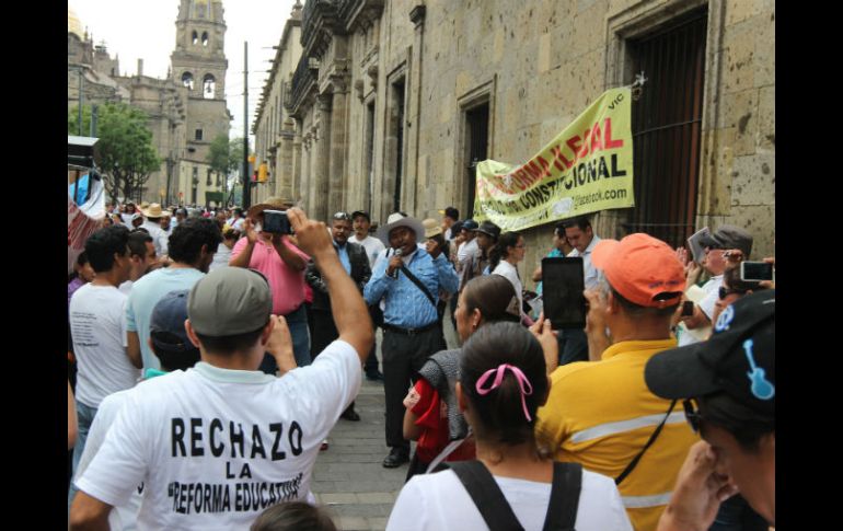 Jalisco | Asamblea Magisterial hará movilizaciones por la aprobación de la Ley de Educación Maestros de Jalisco preparan protestas Integrantes de Asamblea Magisterial harán movilizaciones por la aprobación de la Ley de Educación Por: EL INFORMADOR 27 de febrero de 2014 - 18:12 hs Analizarán la posibilidad de realizar el mitín y la huelga de hambre programados para el 1 de marzo. / GUADALAJARA, JALISCO (27/FEB/2014).- Integrantes de la Asamblea Magisterial Democrática de Jalisco harán movilizaciones ante la aprobación de la Ley de Educación para el Estado de Jalisco. Juan Carlos Balderas Rentería, vocero de la organización, explicó que están tomando acciones para protestar ante las autoridades estatales con la finalidad de presionar al Gobernador a vetar la Ley. Durante la tarde y noche de este jueves definirán sus acciones en la que se analizará la posibilidad de realizar el mitin y la huelga de hambre programados para el 1 de marzo afuera del Congreso local. En su sitio oficial de Facebook, la Asamblea Magisterial Democrática (AMD) de Jalisco, emitió una alerta luego de que esta mañana autoridades estatales instalaron vallas frente al Congreso local para contener una posible marcha magisterial. "¡Alerta compañeros, frente al Congreso han instalado vallas mientras en el interior se discute la armonización de las leyes estatales! Es momento de activar a los compañeros y estar atentos al llamado que se hará a realizar acciones... se avecina un albazo... Es momento de comunicar y estar en ALERTA MÁXIMA ante la posibilidad de un paro de labores urgente y presentarnos al Congreso del Estado". La Asamblea Magisterial Democrática de Jalisco considera que los cambios a la ley afectan sus derechos laborales principalmente los que tienen que ver con su jubilación. EL INFORMADOR / ANDRÉS ZÚÑIGA Temas Manifestaciones en Jalisco Municipios Reforma Educativa Lee También Protección Civil reabre el malecón de Puerto Vallarta Detienen a asesino de joven en partido de futbol ¿Cuál era la relación entre el barco pirata hundido en Vallarta y Colón? Así estará Guadalajara por la tarde; ¿lloverá? Recibe las últimas noticias en tu e-mail Todo lo que necesitas saber para comenzar tu día Registrarse implica aceptar los Términos y Condiciones