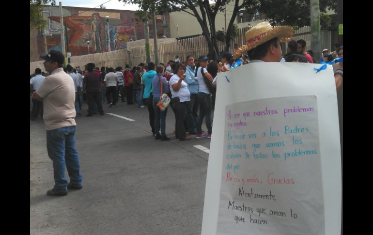 Jalisco | El contingente camina por Avenida Alcalde, que está cerrada en ambos sentidos Maestros de Jalisco protestan contra la reforma educativa Unos mil 600 profesores iniciaron con su protesta contra la reformas educativa y energética en Avenida Alcalde, que está cerrada en ambos sentidos Por: EL INFORMADOR 4 de septiembre de 2013 - 10:49 hs Los trabajadores se reunieron en La Normal, para posteriormente dirigirse a Plaza de Armas. / GUADALAJARA, JALISCO (04/SEP/2013).- Mil 600 profesores de Jalisco iniciaron su marcha en el primer cuadro tapatío, con el objetivo de protestar contra las reformas educativa y energética. Desde las 10:00 horas el contingente se reunió en La Normal, y fue hasta las 11:14 horas que empezaron a caminar por avenida Alcalde, con el objetivo de llegar hasta Plaza de Armas. La arteria está bloqueada en ambos sentidos. En días pasados, integrantes de Bases Magisteriales manifestaron su rechazo también a la reforma energética, por lo que también su protesta es en ese sentido. Ayer, el Senado de la República aprobó sin cambios en lo general y en lo particular, con 102 votos a favor y 22 en contra, la ley del Servicio Profesional Docente con la cual es obligatoria la evaluación de maestros en el país. La iniciativa presidencial establece nuevas reglas en los procesos de evaluación, promoción y permanencia frente a los grupos de alumnos de todos los profesores del país. En la discusión de las reservas de artículos en lo particular esta madrugada, el presidente de la Comisión de Educación, Juan Carlos Romero Hicks (PAN), propuso modificar el artículo 79 de la ley general de Servicio Profesional Docente, con el fin de que los resultados de las evaluaciones a maestros sean públicos, pero esto no fue avalado, por lo que serán secretas. En la Ciudad de México, integrantes de la Comisión Nacional de los Trabajadores de la Educación ( CNTE) también protestan contra la reforma educativa, del Auditorio Nacional hacia el Palacio Legislativo de San Lázaro. Temas Manifestaciones en Jalisco Municipios Centro Histórico Reforma Educativa Lee También Cartucho Astros de Jalisco toma ventaja sobre Xalapa en la semifinal de zona Detienen a presunto homicida en Lomas de Oblatos Puerto Vallarta es reconocida como la mejor ciudad pequeña de Latinoamérica Recibe las últimas noticias en tu e-mail Todo lo que necesitas saber para comenzar tu día Registrarse implica aceptar los Términos y Condiciones