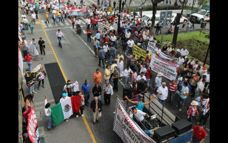 Jalisco | Asamblea Magisterial termina su protesta en repudio a la reforma educativa Maestros hacen clausura simbólica del Congreso de Jalisco La Asamblea Magisterial termina su protesta en repudio a la manera en que se aprobó la reforma educativa Por: EL INFORMADOR 30 de octubre de 2013 - 14:35 hs Los docentes piden que se garantice la gratuidad de la educación. / GUADALAJARA, JALISCO (30/OCT/2013).- Con una clausura simbólica del Congreso del Estado, la Asamblea Magisterial Democrática termina su protesta en "repudio a la manera poco democrática que se condujeron los diputados ante la aprobación de la Reforma Educativa", menciona el secretario del Sindicato Único de Académicos del Colegio de Bachilleres de Jalisco (Suacobaej), y vocero del movimiento, Carlos Sheel. "No estamos solicitando nada, puesto que desde antes que se aprobara la Reforma, vinimos a platicar con ellos y decían que íbamos a dialogar, y aun así la aprobaron". Desde las 10 de la mañana maestros se congregaron en dos puntos: las instalaciones de Televisa, y el Parque Agua Azul, para marchar hacia el Congreso del Estado, y la Glorieta de la Normal, respectivamente; con el fin de declararse en contra de algunas disposiciones de la Reforma Educativa. Específicamente, buscan revertir la exigencia de la Ley General del Servicio Profesional Docente que responsabiliza de la calidad de la educación sólo a los profesores. También piden que se garantice la gratuidad de la educación y evitar su privatización que, según Carlos Sheel, se está concretando por falta de recursos para mantener a las escuelas. Itinerario de la protesta En punto de las 10:30 horas, los miembros de la Asamblea hicieron un mitin frente a las instalaciones de Televisa, cercadas por vallas de metal y por elementos de la policía municipal y estatal, donde pidieron un espacio para informar fielmente de su movimiento. "Basta de calumnias y difamaciones", gritaban hacia el medio de comunicación. Finalmente, fueron recibidos cuatro representantes de la Asamblea y tuvieron una entrevista de 10 minutos, según el vocero Sheel. "Se comprometieron que pasarían integra la noticia en el espacio noticioso de la tarde y la noche". Poco antes, el grupo de normalistas que partió del Parque Agua Azul bloqueó varios carriles de Avenida 16 de septiembre, hasta su llegada a la Glorieta de La Normal, cerca de las 13:00 horas; por su parte, el contingente que partió de Televisa impidió la circulación en las avenidas Alemania y Enrique Díaz de León. Esta arteria fue bloqueada desde el mediodía, cuando se dirigieron al Congreso, para después caminar sobre Hidalgo. Las protestas se extendieron desde las 10:00 horas, hasta cerca de las 15:30, con la clausura simbólica, y la quema de papeles y documentos que el Sindicato Nacional de Trabajadores de la Educación "les quiere hacer firmar Planean nuevas acciones Carlos Sheel informa que dentro de una nueva asamblea, a realizarse en los próximos 15 días, se definirán las nuevas expresiones del movimiento. "Hay compañeros que quieren tomar medidas más fuertes, como volver a tomar casetas, bloquear el aeropuerto, o toma de instalaciones estratégicas". Agrega sobre el descuento de salarios a los cerca de 500 maestros que asistieron a la protesta y que faltaron en sus escuelas, que no corren peligro, ya que hasta ahora han recibido sus salarios, "los profesores deben estar dispuestos a asistir a las marchas a pesar de que no les paguen, porque es preferible un día de falta que quedarse sin trabajo". Para saber La Asamblea se compone por el Suacobaej, Maestros Vallarta-Movimiento de Bases Magisteriales, Colectivo Magisterial Democrático, Movimiento del Magisterio Independientedel Sur, Red Magisterial del Sur y Movimiento de Telesecundarias. EL INFORMADOR / SAÚL PRIETO Temas Manifestaciones en Jalisco Municipios Reforma Educativa Lee También Profeco revela cuál es el supermercado más económico de Jalisco Charros de Jalisco busca redondear el año Hospitales psiquiátricos enfrentan saturación Empresarios esperan alza en generación de empleo Recibe las últimas noticias en tu e-mail Todo lo que necesitas saber para comenzar tu día Registrarse implica aceptar los Términos y Condiciones