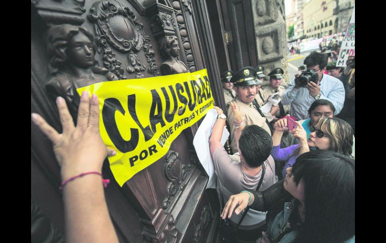 Jalisco | Manifestantes recorren el Centro por rechazo a nuevas leyes Maestros y comerciantes 'clausuran' dependencias Alrededor de mil inconformes recorrieron varios edificios oficiales, incluido el de la CFE Por: EL INFORMADOR 2 de mayo de 2014 - 03:04 hs PUERTAS DEL EJECUTIVO. Opositores fijan una leyenda en la sede del Gobierno estatal. / GUADALAJARA, JALISCO (02/MAY/2014).- Fueron contra el partido, contra el Gobierno y contra la televisora. Maestros inconformes con la reforma educativa y comerciantes que rechazan la fiscal se unieron en una sola protesta ayer, Día del Trabajo, para expresar su rechazo a la nueva legislación y, para materializarlo, colocaron sellos de clausura ficticios en la sede del Partido Revolucionario Institucional (PRI), Palacio de Gobierno del Estado y otros edificios gubernamentales. El nutrido bloque de manifestantes avanzó a las 11:00 desde Plaza Juárez, hizo un circuito por Avenida del Campesino para pasar por la sede estatal del PRI y colocar el primer “sello de clausura” en las puertas exteriores, a la voz de: “¡Esos son los que roban la nación!”, aludiendo al partido en el poder. El contingente siguió por Avenida 16 de Septiembre y repitió la operación en las instalaciones de la Procuraduría General de la República (PGR), donde colocaron el segundo sello por su ineficiencia, aseguraron, en garantizar condiciones de seguridad a los ciudadanos. “Clausuramos porque somos una sociedad que no nos sentimos segura, y con esta clausura expresamos nuestro derecho como trabajadores de exigirlo”, dijo una voz mediante el monitor con micrófono. Cruzaron la acera para también colocar un sello amarillo con la palabra “clausura” en las puertas de la Secretaría de Economía que, por ser día de asueto, estaba cerrada. Aseguraron que las reformas hacen a los ricos más ricos y a los pobres más desprotegidos, de ahí su inconformidad y medidas como el cierre simbólico. El grupo de manifestantes, conformado principalmente por maestros de distintos sindicatos, avanzó cerrando también simbólicamente la Comisión Federal de Electricidad y el Palacio de Gobierno, donde los cerca de mil presentes, según Protección Civil, hicieron un plantón de dos horas exponiendo sus inconformidades. Teatro contra el sistema A propósito del Día del Trabajo, leyeron un texto en el que expresaron las condiciones de la clase trabajadora mexicana, reclamaron los bajos salarios y por el contrario la cara burocracia del país, asimismo, a manera de obra de teatro, involucraron a la empresa Televisa como servidora del PRI. “Publica (Carlos) Loret de Mola su documental De Panzazo donde saca todo el problema educativo del país y nos expone a los maestros como los que echamos a perder todo, como los malos y corruptos, para poder justificar que se necesita una reforma. Pero lo bueno, de eso no se dijo nada”, exclamó una actriz sobre una tarima, afuera del Palacio de Gobierno. Aristóteles defiende las reformas El gobernador de Jalisco, Aristóteles Sandoval Díaz, afirmó que las reformas económicas impulsadas por el Presidente Enrique Peña Nieto mejorarán la calidad de vida de los mexicanos y que, en la inmediatez, se verán los resultados en sus bolsillos, durante un acto conmemorativo por el Día del Trabajo. La cita fue en Expo Guadalajara y asistieron los líderes sindicales que representan 90% de la fuerza laboral de Jalisco: la Confederación Revolucionaria de Obreros y Campesinos (CROC), de la Confederación de Trabajadores de México (CTM), de la Confederación Regional Obrera Mexicana (CROM) y de la CROC Jalisco. En medio del desayuno, el mandatario estatal dijo que el Gobierno federal promueve una política económica que mejorará el salario mínimo del trabajador. Según Sandoval Díaz, viene un cambio que “empieza muchas resistencias de grupos a los que verdaderamente se les afecta su comodidad, su confort, en el que toda la historia de nuestro país han vivido”. Reconoció que cada vez el dinero se concentra en menos manos y lo atribuyó a la falta de competencia por los monopolios. El gobernador aclaró que en el caso de la reforma fiscal no habrá un impacto positivo de inmediato en los pequeños comerciantes, pero que los informales podrán acceder a seguro social, créditos para vivienda y al seguro de desempleo. El líder de la CROC Jalisco, Alfredo Barba habló en representación de los sindicatos y aseguró que el sector obrero apoya las reformas del Gobierno de Peña. Barba Hernández llamó a los secretarios de otras agrupaciones a hacer un sindicalismo útil, que dé más valor y vigencia al gremio en defensa de los trabajadores. CRÓNICAMitin por el “futuro” Por Daniela Castillo Como cada año, abandonaron la comodidad de sus hogares, renunciaron a uno de los pocos días libres y se despidieron de un puente vacacional, a cambio de horas de caminata bajo el Sol de mayo. Unos cuantos llevaban a su pareja e hijos y se unieron a la lucha. Iban armados con pancartas y gritos de protesta: “¡UdeG presente, Prepa 6 presente, Prepa 2 presente!”. La marcha del 1 de Mayo es una tradición para miles de trabajadores que se manifestaron desde Avenida Chapultepec hasta la Plaza de Armas, en busca de la defensa de sus derechos laborales. Las causas que los llevaron ahí son varias: unos reclamaban mejores salarios; otros, menos horas de trabajo; unos más, casas de retiro para jubilados. Pero a todos los unió la búsqueda de mejores condiciones de trabajo. Los manifestantes se extendieron por más de seis cuadras sobre Hidalgo. Era imposible contarlos. Las camisetas fueron el único distintivo que permitía identificarlos como parte de un sindicato. Había trabajadores del DIF, del Sistecozome, Protección Civil y Bomberos. No obstante, los miembros de la Universidad de Guadalajara lideraban la manifestación. Luis marchó solo, cargado con una bandera blanca de “Sindicato Único de Trabajadores de la UdeG”. Se unió a los g