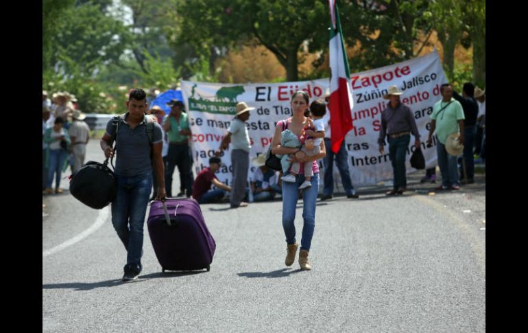 GUADALAJARA, JALISCO (19/JUN/2017).- A diferencia de otras ocasiones, la manifestación de El Zapote provocó molestias a los usuarios del aeropuerto, pues el embotellamiento que se generó sobre la carretera a Chapala ocasionó que algunos llegaran retrasados a tomar su vuelo, mientras que otros tantos debieron caminar con su equipaje desde la carretera a Chapala.Arturo Adame se bajó del taxi con una tremenda valija en la espalda y dos maletas. Gracias a su paso aún no tenía retraso pero sí se vio obligado a caminar cerca de un kilómetro con todo su equipaje a cuestas. "Me gustaría que arreglaran la situación, si deben de pagar y lo adeudan, pues que lo hagan".Con un poco de retraso y con el sol a plomo, Luis Sandoval también avanzaba deprisa con su sendo equipaje. Llegó en Uber pero el auto lo dejó en la carretera. "Es un relajo y no hay como avisos ni nada. No sé por qué se están manifestando, no estoy en contra, pero tenemos un vuelo y tenemos que llegar a la Ciudad de México, imagínense si lo perdemos".A una semana de marchas diarias, este lunes incluyeron un plantón temporal dentro del Aeropuerto para presionar a la Secretaría de Comunicaciones y Transportes (SCT) para la firma del convenio con Grupo Aeroportuario del Pacífico (GAP) para el pago de las 307 hectáreas del ejido sobre las que se construyó la terminal."Ya ahorita ya se va a quedar el plantón, nosotros tenemos que seguir tope lo que tope", dijo el presidente del ejido, Nicolás Vega.Aunque se citó a las 9:00 horas, fue hasta las 10:30 que salió el contingente de unas cien personas. Caminaban sobre el carril de la derecha pero el tumulto fue suficiente para congestionar el tráfico de inmediato. "¡Si ya lo dijo el juez, lo deben de entender, la tierra del ejido la paga SCT!", gritaban en su andar.Desde hace tres meses trabajaron un convenio con el GAP, a la vista de la SCT y observado por las cúpulas empresariales. Éste contemplaba un pago de tres mil millones de pesos: mil 200 para finiquitar el conflicto por las 307 hectáreas; y el resto, para comprarles 137 hectáreas más que el GAP necesita para construir una segunda pista e instalaciones.El oficial mayor de SCT, Rodrigo Ramírez Reyes, ya había admitido que la dependencia no cuenta con recursos, por lo que el GAP pagaría dicho monto a cambio de ampliar su concesión. Las cúpulas empresariales ya urgieron a la SCT a solucionar esto pues es necesaria la construcción de la segunda pista por la creciente demanda de vuelos.Alrededor de las 11:00 horas los marchantes llegaron al ingreso al Aeropuerto pero se detuvieron para descansar una media hora, lo que complicó el tráfico que se prolongó por kilómetros. Sólo los autos que llegaban por el desnivel desde Chapala podían entrar sin contratiempos.Avanzaron de nuevo hasta el estacionamiento donde se volvieron a detener. Poco después del mediodía llegaron a las salas, que estaban bloqueadas por personal de seguridad que colocó barreras. Los viajantes, molestos por esta acción, no podían salir ni entrar. "¡Somos campesinos, no somos asesinos!", coreaban los del ejido.Al final los guardias habilitaron un ingreso y las personas pudieron entrar para tomar sus vuelos. Después se montó un plantón temporal con pancartas el cual se retiró a las seis de la tarde. Evangelina Vega, una de las manifestantes, recordó que este martes será igual. "Estaría más fácil que nos pagaran y ya no vamos".EL INFORMADOR / SERGIO BLANCO