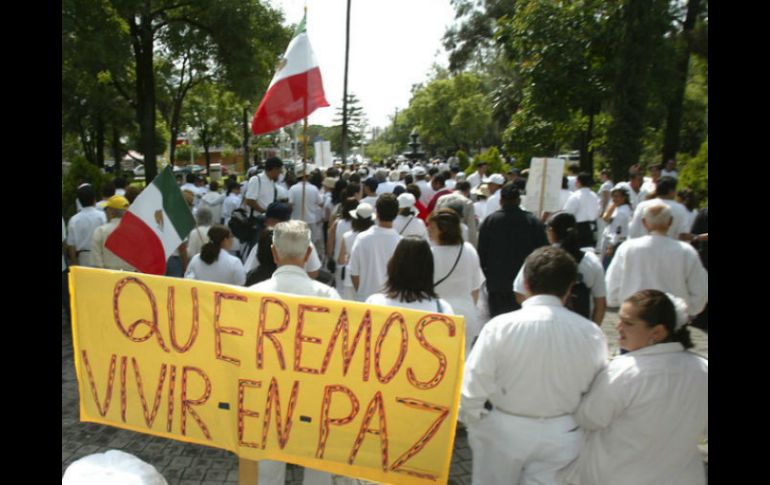 Jalisco | La organización estudiantil invita a la ciudadanía a participar y vestir de blanco Marcha convocada por la FEU partirá con cinco contingentes Será mañana a las 11:00 horas cuando partan de diferentes puntos, hacia el Centro Histórico de la ciudad Por: EL INFORMADOR 22 de mayo de 2012 - 19:27 hs La FEU ha hecho extensiva la invitación a organizaciones civiles, grupos y colectivos. ARCHIVO / GUADALAJARA, JALISCO (22/MAY/2012).- La Federación de Estudiantes Universitarios (FEU) convocó a participar en la Marcha por la Paz, la cita es mañana miércoles 23 de mayo, a las 11:00 horas. Serán cinco los contingentes que partirán de distintos puntos, el primero de la Rectoría de la UdeG, el segundo de La Normal, el tercero de Olimpica, el cuarto de Plaza de la Bandera y el último de Plaza Juárez, todos tendrán como destino final el Centro Histórico de la Ciudad, en donde se prevé lleguen a las 12:00 del medio día. Tanto el rector de la Universidad de Guadalajara, Marco Antonio Cortés Guardado, como el dirigente estudiantil, Marco Antonio Núñez Becerra, en los últimos días han hecho un llamado a la ciudadanía a que se una a ésta exigencia de paz, debido al incremento de la violencia en el Estado y a que en el último semestre nueve estudiantes de la Universidad de Guadalajara han sido asesinados en diferentes hechos. Núñez Becerra ha señalado que, "Invitamos a todas las organizaciones civiles, a grupos y colectivos de todo tipo a que se sumen a este esfuerzo. No se trata de buscar protagonismos, sino que los gobiernos escuchen a una sociedad que ya no tolera más inseguridad, ni violencia". Temas Manifestaciones en Jalisco Municipios FEU Lee También EN VIVO: Maiceros bloquean carretera Guadalajara-Morelia ¿Qué exigen los productores de maíz? Aquí te decimos Liberan carretera Guadalajara-Morelia tras bloqueo de maiceros Así se ve la carretera Guadalajara-Morelia en cámaras del C5 tras bloqueo Recibe las últimas noticias en tu e-mail Todo lo que necesitas saber para comenzar tu día Registrarse implica aceptar los Términos y Condiciones