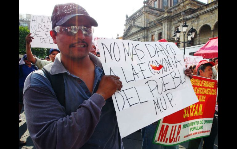 Jalisco | Afirman que esto afectará la economía de los trabajadores Marchan contra el reciente aumento al transporte Alrededor de150 integrantes de la Confederación General de Trabajadores y Movimiento de Unidad Popular se manifiestan en el Centro Histórico en contra del aumento a la tarifa del transporte público Por: EL INFORMADOR 16 de agosto de 2012 - 17:13 hs Los inconformes son de la Confederación General de Trabajadores (CGT) y Movimiento de Unidad Popular. / GUADALAJARA, JALISCO (16/AGO/2012).- Unas 150 personas convocadas por la Confederación General de Trabajadores (CGT) y Movimiento de Unidad Popular marcharon por calles el Centro Histórico de Guadalajara, para manifestarse en contra del aumento a la tarifa del transporte público, que pasó de seis a siete pesos en la Zona Metropolitana. “Estamos pidiendo (al Gobierno y transportistas) que recapaciten y den marcha atrás en el incremento injusto que acaban de aprobar (el miércoles) de siete pesos”, explicó el secretario general de la CGT, Víctor Manuel Ramírez Cerna. Con pancartas en mano, con leyendas como “No más daño a la economía del pueblo” y “Marcha atrás al incremento de siete pesos”, las poco más de 150 personas (según el ciclopolicía Carlos Ramírez) avanzaron a las 17:00 horas desde el Parque Revolución por la avenida Hidalgo, para luego dar vuelta en 16 de Septiembre y detenerse frente a Palacio de Gobierno, a eso de las 17: 30 horas. “Vamos a seguir fortaleciendo estas marchas y movimientos para ir haciendo conciencia en el pueblo de que se debe dar marcha atrás al aumento”, indicó Ramírez Cerna al ser cuestionado sobre si seguirán con las movilizaciones en días posteriores. Por lo pronto, tienen planeado presentar un escrito ante la Comisión Tarifaria, para que “recapacite” sobre el incremento “injusto” en el costo del pasaje. “Siempre al pueblo le pegan: el incremento a la gasolina, a la canasta básica, y ahora el transporte; no se vale”, reprochó el secretario general de la CGT. Hasta las 18:00 horas, algunos de los manifestantes esperaban los camiones al cruce de Hidalgo y Liceo, que los llevara a sus destinos. En ocasiones, obstruyeron el paso de vehículos en ambas vialidades, pero una decena de policías tapatíos y agentes viales procuró el orden. Al final de la movilización, miembros de la protesta pedían “torta” y “agua”, preguntaban al organizador si habría que anotarse en “la lista”, entre otras expresiones. Ramírez Cerna negó que fueran obligados a participar de la manifestación e indicó que se hizo la invitación mediante volantes. Un trabajador de una compañía de aceros, que prefirió omitir su nombre por temor a represalias, indicó, junto a media docena de compañeros, que les habían advertido que, de no acudir a la movilización, serían “castigados con tres días”. Voces de los manifestantes “Nos dicen que el incremento es de un peso, pero se multiplica el costo por número de pasaje y de integrantes de la familia” Víctor Manuel Ramírez Cerna, secretario general de la CGT. “El servicio (de transporte) es malo; además, el beneficio no es para los choferes, es para el dueño del camión” Romelia Rial Bocardo, manifestante “No solo son los siete pesos (costo del transporte), es la canasta básica, los sueldos; no nos ajusta” Adrián Robles, de la CGT “El servicio (del transporte) es pésimo, no creo que sea justo; así se la van a llevar hasta llegar a los 10 pesos” Víctor Ramírez, de la CGT EL INFORMADOR / Con información de MARIANA AGUERO / MIRIAM PADILLA Temas Manifestaciones en Jalisco Aumento transporte público Municipios Lee También Astros de Jalisco doblega a Xalapa y se pone a un juego de la Final de Zona Escuela Gómez de Mendiola celebra sus primeros 75 años al servicio de los tapatíos Proyectan expansión de Placencia Muebles Omar 'N' es vinculado a proceso por presunto abuso sexual infantil agravado Recibe las últimas noticias en tu e-mail Todo lo que necesitas saber para comenzar tu día Registrarse implica aceptar los Términos y Condiciones