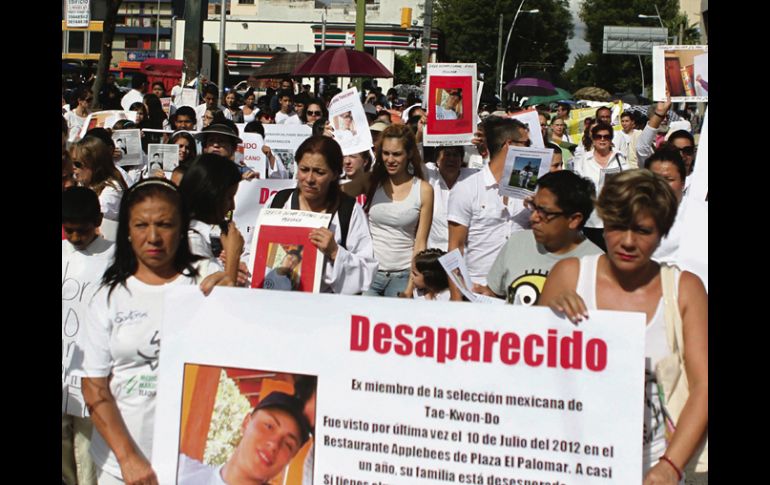 Jalisco | Unas 250 personas exigen mejor atención a las autoridades de Jalisco Marchan por Nancy, Luis, Andrés y más desaparecidos Lentitud de las autoridades, burocracia que atrasa investigaciones y falta de respuestas fueron algunas de las quejas de los manifestantes Por: EL INFORMADOR 8 de julio de 2013 - 03:01 hs También por Oliver Díaz Toscano. La familia del deportista jalisciense no sabe de él hace casi un año. EL INFORMADOR / GUADALAJARA,JALISCO (08/JUL/2013).- El de la bebé Nancy y el de los muchachos Luis Antonio y Andrés son sólo dos casos de desapariciones forzadas que se han ventilado en los medios de comunicación recientemente, pero ayer, con una marcha, 250 personas que se dijeron familiares y amigos de otras personas desaparecidas en Jalisco pidieron que las autoridades hagan lo necesario para que toda esa gente perdida vuelva a su casa. Y el reclamo fue pacífico, pero directo. El contingente integrado por personas vestidas de blanco avanzó ayer durante más de una hora por Avenida Vallarta, desde el Parque Revolución hasta La Minerva. Llevaron consigo impresos e información de los desaparecidos. En el grupo iba Julieta Toscano, madre de Oliver Díaz Toscano, un taekwondoín afiliado al Consejo del Deporte del Estado de Jalisco (Code), desaparecido desde el 10 de julio del año pasado: “Me dijeron familiares que no ventilara (en medios) el caso, es la primera vez que lo hago; sólo sabemos lo de la investigación: estuvo en Secuestros (en el área de investigación) y nos lo cambiaron a Desaparecidos, y espero que esta administración (gubernamental) nos eche la mano. Con la otra, el expediente duraba tres o cuatro días en el escritorio. Yo sólo quiero que aparezca mi hijo”. Para Gerardo Calderón Zarate, padrastro de José Ignacio Rosas Gómez, de 11 años y desaparecido el 25 de octubre de 2012, la mediatización de un desaparecido influye en el seguimiento que le puedan dar las autoridades: “Por los medios de comunicación hay más presión, puede ser la diferencia entre que se le dé seguimiento (oficial) o no”. María Aguilar tiene a su hijo desaparecido desde el 17 de enero de 2011. Pidió solidarizarse con los padres y cercanos de otros desaparecidos, para convocar y llevar a cabo más marchas a fin de obtener respuestas de las autoridades y presionarlas. “He recurrido a todas las instancias estatales y federales y no hay respuesta; yo los invito para hacer presión a las autoridades, es lo único que nos puede dar respuestas. Seguramente mi hijo a estas alturas ya está muerto, pero los hijos de ustedes, que tienen menos tiempo de desaparecidos, hay posibilidades de encontrarlos”. La marcha, definió por su cuenta Carlos Ortiz Rayas, el papá de Luis Antonio, “es un derecho que se tiene para pedir por todas las personas desaparecidas que viven un infierno al no saber de ellos; es muy difícil vivir con nuestros hijos desaparecidos, hay más mexicanos desaparecidos”. PIDE A LA SOCIEDAD QUE NO SE QUEDE CALLADAQue las autoridades den resultados: cardenal Robles Un mensaje de cercanía y solidaridad, junto con una oración para pedir fortaleza y consuelo a las familias que lamentan la pérdida de los adolescentes Luis Antonio Ortiz Guerra y Andrés Barba Olivas, envió ayer el cardenal José Francisco Robles Ortega, luego de celebrar misa en la Catedral de Guadalajara. Además exhortó a las autoridades a esclarecer el caso con verdad y justicia “Ésta es una alerta a todos los papás para que estén cerca de sus hijos, para ganar su confianza y mantener el diálogo que los ayude durante esta etapa de la adolescencia que es crítica y difícil; entonces es cuando se requieren más apoyo de los papás”. Robles Ortega manifestó que “hace falta en los casos de desaparecidos que se den resultados de investigación por parte de las autoridades y que la sociedad coopere, que no se queden callados. Tenemos que desarrollar una cultura de la denuncia por parte de los ciudadanos, y otra de la seguridad y confianza de las autoridades”. Puesto que el fiscal general Luis Carlos Nájera expuso el uso de las redes sociales como medio por el que incentivó el delito, el cardenal indicó que plataformas como Facebook son “un medio de comunicación que la humanidad ha alcanzado y no puede renunciar a él. Hay que sacar la máxima ventaja, pero estas redes en mano de los jóvenes deben usarse bajo cierta vigilancia que la familia proponga a los jóvenes”. JUEZ DA CINCO DÍAS PARA NUEVAS PRUEBASIsaac seguirá recluido en forma provisional Isaac, el joven de 17 años, acusado de secuestro agraviado contra Luis Antonio Ortiz Guerra y Andrés Barba Olivas, los jóvenes que fueron asesinados en una supuesta venganza planeada por otros menores de edad, permanecerá recluido provisionalmente. Ayer se le declaró auto de vinculación al procedimiento que le sigue el juez segundo especializado en Justicia para Adolescentes, José García Hernández. Se trata de una resolución jurídica temporal para que su proceso continúe, luego de que se le encontraran las pruebas suficientes para vinculársele a la sustracción de los menores, quienes fueron hallados muertos el martes pasado. De esta manera, Isaac quedará recluido para continuar las averiguaciones rumbo a una sentencia definitiva, y dado que no tiene derecho a fianza por la gravedad del delito, su defensa cuenta con cinco días para presentar pruebas a su favor. La supuesta participación de Isaac en el doble crimen consistió en citar con engaños a los jóvenes en una plaza comercial de Zapopan; de allí, los dos muchachos, de 15 años de edad, fueron llevados a un predio en el Bosque La Primavera, donde otras personas les dieron muerte. Hasta el momento, Isaac es la única persona detenida con que cuenta el Ministerio Público, pero la investigación para dar con los otros responsables sigue en pie. EL DEL ARGENTINO FEDERICO TOBARES, OTRO CASO POR RESOLVERUsan redes sociales para pedir ayuda