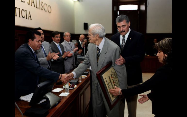 Jalisco | Se le reconoció su invaulable participación en la administración de la justicia Mario Rivas Souza recibe homenaje por su trayectoria Al director del Servicio Médico Forense se le reconoció su invaulable participación en la administración de la justicia Por: EL INFORMADOR 20 de abril de 2012 - 16:52 hs Mario Rivas Souza recibió un homenaje en el pleno del Supremo Tribunal de Justicia del Estado. / GUADALAJARA, JALISCO (19/ABR/2012).- El pleno del Supremo Tribunal de Justicia del Estado realizó un homenaje al doctor Mario Rivas Souza, Director del Servicio Médico Forense, por su invaluable participación en la administración de la justicia ya que ingresó al Departamento de Medicina Legal en 1953, cuando dependía del Supremo Tribunal. Al hacer uso de la voz, Mario Rivas Souza recordó que desde que ingresó al Servicio Médico Forense, lo hizo también al Supremo Tribunal de Justicia, por lo que siempre ha sido de la administración de justicia y a ésta se ha comprometido, "ya no camino muy bien y hoy todavía fui a dar clases en Medicina y Derecho" El Magistrado Presidente del Supremo Tribunal de Justicia del Estado, Doctor Celso Rodríguez González señaló que “se trata de un señor que nos ha enseñado valores, congruencia, sobre todo en la función pública, es además un ciudadano ejemplar que su labor como médico legal trascendió a la impartición de justicia en Jalisco” “Fue el pilar principal en aquel momento cuando había mucha escasez en esa materia y nos dio luz para resolver muchos juicios y creo que es una importante labor que tenemos que reconocer”, apuntó el Magistrado Rodríguez González. Mario Rivas Souza estudió, entre otras instituciones en el Instituto de Ciencias e ingresó a la Facultad de Medicina de la Universidad de Guadalajara en 1946. Fue un alumno destacado en la escuela de medicina y se graduó en 1952, en lo que fue la primera generación del Plan Mendiola y el primero de marzo de 1953 fue invitado por el Doctor Miguel Quezada Ochoa, entonces Jefe del Departamento de Medicina Legal del STJ, a ingresar a lo que hoy es la Medicina Forense. Su trayectoria como médico forense siempre ha estado ligada a sucesos relevantes en el ámbito político, religioso, social, de justicia y empresarial. Ha sido además maestro de generaciones de médicos desde 1957 y logró la titularidad de la cátedra en 1965. En su momento ante los magistrados Mario Rivas Souza señaló que desde que ingresó al Servicio Médico Forense, lo hizo también al Supremo Tribunal de Justicia, por lo que siempre ha sido de la administración de justicia y a ésta se ha comprometido. En el homenaje estuvieron presentes: Su familia; su esposa Virginia Barba y sus hijos Virginia del Carmen, Manuel, Guillermo, Mario y Antonio Rivas Barba. Así como, el Procurador del Estado, Tomas Coronado Olmos; el ex gobernador del Estado, Guillermo Cosío Vidaurri; el director general de los Hospitales Civiles de Guadalajara Jaime Agustín González Álvarez; el Maestro Samuel Fernández Ávila, director de la División de Estudios Jurídicos de la Universidad de Guadalajara, entre otros. EL INFORMADOR /ZAIRA RAMÍREZ Temas Homenaje Supremo Tribunal de Justicia del Estado Lee También Reforma Judicial sin MC Salinas Pliego asegura que el SAT le quiere cobrar "derecho de piso" Jubilados realizan manifestación frente a la SCJN; planifica tu ruta de hoy Guadalajara destaca decisión del TJA sobre bosque de los Colomos Recibe las últimas noticias en tu e-mail Todo lo que necesitas saber para comenzar tu día Registrarse implica aceptar los Términos y Condiciones