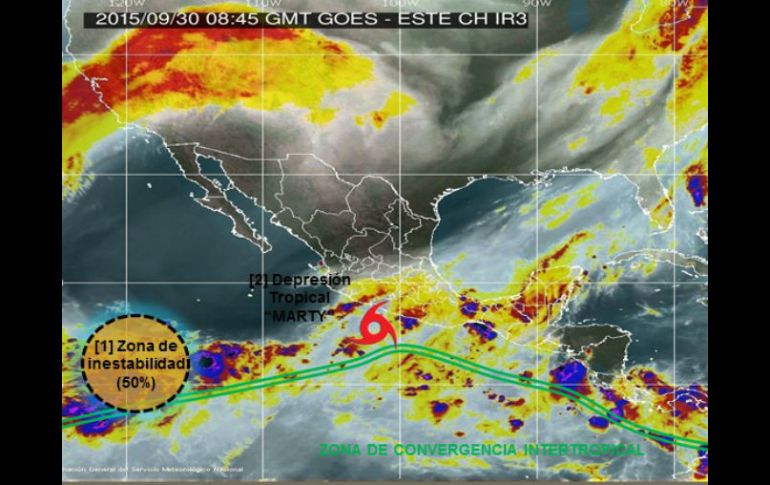 Jalisco | Las lluvias fuertes continuarán en Jalisco hasta el jueves 'Marty' se degrada a depresión tropical El SMN informa que el fenómeno se encuentra a 185 kilómetros al sur-suroeste de Zihuatanejo, Guerrero Por: NTX 30 de septiembre de 2015 - 07:28 hs CIUDAD DE MÉXICO (30/SEP/2015).- "Marty", ahora como depresión tropical, continúa su debilitamiento muy cerca de las costas de Guerrero y Michoacán, y mantiene un avance lento hacia el oeste, generando lluvia continua, viento fuerte y oleaje elevado en la costa de Guerrero. El Servicio Meteorológico Nacional ( SMN) informó que se encuentra a 185 kilómetros al sur-suroeste de Zihuatanejo, Guerrero y a 405 kilómetros al sureste de Manzanillo, Colima, con vientos máximos sostenidos de 55 kilómetros por hora y rachas de 75 kilómetros. Provocará potencial de precipitaciones muy fuertes en Guerrero y Michoacán; fuertes en Jalisco y Colima; y de menor intensidad en estados del centro del territorio nacional. Se espera que "Marty" continúe produciendo lluvias fuertes a muy fuertes hasta el próximo jueves, las cuales pueden propiciar deslaves en zonas montañosas e inundaciones en zonas bajas; para hoy se prevén vientos sostenidos de 20 a 35 kilómetros por hora y oleaje de 1.5 a 2.5 metros en las costas de Guerrero y Michoacán y de hasta tres metros en zonas marítimas. Se recomendó extremar precauciones a la población en general y a la navegación marítima en las zonas de los estados mencionados por vientos, lluvia y oleaje, así como atender las recomendaciones emitidas por las autoridades del Sistema de Protección Civil. Temas Conagua Municipios Temporada de lluvias SMN Lluvias en el país Lee También Gobierno de México confirma 42 fallecidos y 27 desaparecidos por intensas lluvias "Raymond" baja su potencia, pero tocará tierra en horas ¿Cuál era la relación entre el barco pirata hundido en Vallarta y Colón? Así estará Guadalajara por la tarde; ¿lloverá? Recibe las últimas noticias en tu e-mail Todo lo que necesitas saber para comenzar tu día Registrarse implica aceptar los Términos y Condiciones