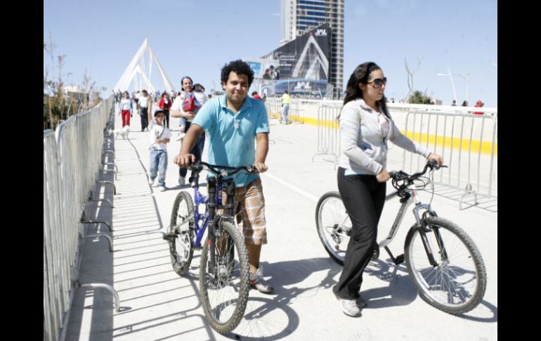 Jalisco | Califican de exitoso el recorrido de la Vía RecreActiva por la nueva obra vial Más de 10 mil estrenan el puente atirantado Algunos paseantes no pudieron transitarlo, pues cerraron su circulación media hora antes de lo informado Por: EL INFORMADOR 30 de enero de 2011 - 16:00 hs Tanto usuarios asiduos a la Vía RecreActiva como los menos frecuentes, asistieron esta mañana a pasear por el Matute Remus. M. FREYRIA / GUADALAJARA, JALISCO (30/ENE/2011).- Más de 10 mil paseantes recorrieron a pie, en bicicleta, patines o patinetas el Puente Matute Remus -conocido como atirantado- la mañana de este domingo, estructura que hoy formó parte de la Vía RecreActiva de Guadalajara. Algunos hasta aprovecharon para tomarse la foto porque una vez que se abra a la circulación la estructura hecha para los automóviles, les será difícil tener una imagen cercana. Algunos asistentes son usuarios frecuentes de la Vía RecreActiva, pero otros que la visitan esporádicamente acudieron ayer para tener la oportunidad de recorrer el puente. “Quedó muy bonito el puente, a veces venimos a la Vía RecreActiva, no siempre, pero hoy vinimos a conocer el puente”, expresó Lourdes Hernánez. Sin embargo, algunos paseantes se quedaron con las ganas de recorrer la obra vial, ya que a partir de las 13:30 se impedía el acceso a la estructura. Lo anterior causó molestia a varias personas que aseguraban tener folletos en los que se mencionó que el paseo terminaría a las 14:00 horas. “Está el volante que nos dieron: de ocho a dos”, manifestó una de las paseantes inconformes. Autoridades tapatías reportaron saldo blanco en el recorrido de Vía RecreActiva y calificaron de exitosa la asistencia de paseantes al Puente Matute Remus, que contó con más de 10 mil participantes, informó Marco Esquivel Tavares, director del paseo dominical en Guadalajara. En general la Vía RecreActiva de Guadalajara tiene una asistencia de entre 120 mil y 180 mil paseantes, según datos proporcionados por el funcionario. Como parte de las actividades de la inauguración del puente atirantado que se abre mañana lunes a la circulación vehicular, este domingo se extendió la Vía RecreActiva a esa estructura vial. EL INFORMADOR / LETICIA FONSECA Temas Municipios Vía RecreActiva Infraestructura Jalisco Recibe las últimas noticias en tu e-mail Todo lo que necesitas saber para comenzar tu día Registrarse implica aceptar los Términos y Condiciones