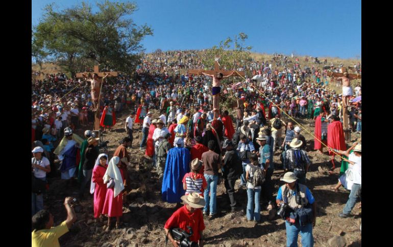 Jalisco | Al final de la actividad los contrincantes se estrechan la mano Más de 500 personas disfrutan de una buena “cuereada” Como lo marca la tradición en Sábado de Gloria, en San Martín de las Flores participaron hombres y mujeres en la ''cureada'' Por: EL INFORMADOR 7 de abril de 2012 - 17:49 hs En el poblado de San Martín de las Flores se lleva acabo el ritual en Sábado de Gloria. / TLAQUEPAQUE, JALISCO (07/ABRIL/2012).- La tradicional Cuereada, celebrada en la plaza cívica de San Martín de las Flores, se vivió en un ambiente tenso desde su inicio y hasta su fin, entre los participantes, pero al final todos estrechan las manos, en señal de caballerosidad, ya sean de capa azul o capa roja. Ante más de 500 personas arrancó como cada año, “La Cuereada” que se celebra en Sábado de Gloria y la cual se va fortaleciendo según los habitantes cada 365 días; se vuelve más arraigado entre los jóvenes de San Martín de las Flores. Eran alrededor de las 10:00 horas de este sábado, cuando los chicotes de los participantes, ya estaban listos para ser desplazados en el cuerpo de sus rivales. Los habitantes, explicaron que son tres rondas, en la que de un punto a otro, los “romanos” y los “judíos” con sus chicotes corren y al darse la señal, los látigos son reventados en los cuerpos de sus rivales y “sin llorar”. “No chillen y dale, dale, dale, hasta que se rinda el cab…”, exclamaba una mujer que disfrutaba del evento sentada bajo la sombra de un árbol. Los participantes para demostrar su valentía, sin dolor y pena, hacían que sus latigazos retumbaran en la plaza hasta que sus fuerzas se veían mermadas. “Es una tradición muy bonita, se muestra la valentía de los hombres, como en antaño, a lo limpio, de caballeros, se calienta el evento, pero de los que están a dentro y no de los que vienen a disfrutar de La Cuereada”, explicó Josefina Madrigal, habitante de San Martin de la Flores. La mujer, agregó que es un error creer que los vecinos todos los días se la pasan “cuereando”, y aclaró que dicho evento sólo sucede una vez al año en la plaza cívica. Y ahora la mujeres. “Dale, dale, dale, cab…esa es mi hija, que se escuche la riata, y sin llorar”, dijo una mujer con un tono de enojo, la cual estaba sentada entre los asistentes. Temas Iglesia Católica en Jalisco Religión Semana Santa Lee También Así queda el tablero tras la turbulencia judicial Rentar casa: surrealismo tapatío Gentrificación de la Glorieta de los Desaparecidos Cartucho Recibe las últimas noticias en tu e-mail Todo lo que necesitas saber para comenzar tu día Registrarse implica aceptar los Términos y Condiciones