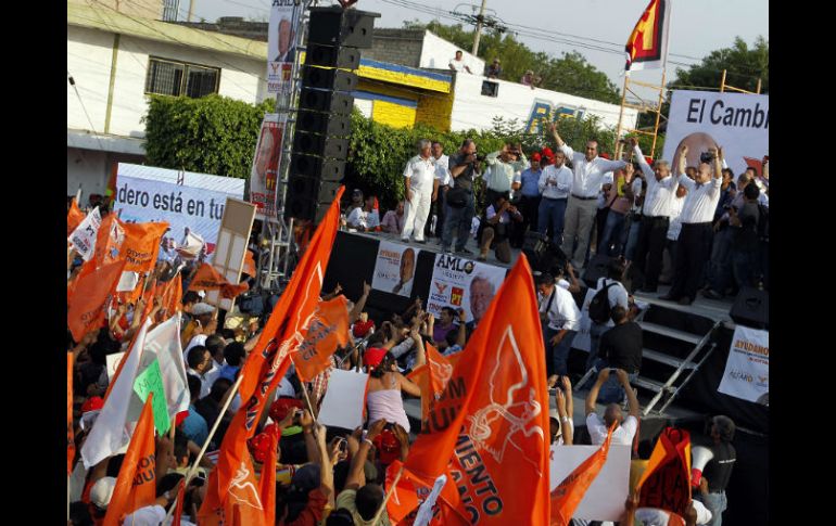 Jalisco | En Guadalajara, el candidato dice que transformará ''radicalmente'' al país México será un ejemplo mundial: López Obrador Pide apoyo para llegar a la Presidencia así como para brindar respaldo a Enrique Alfaro Por: EL INFORMADOR 26 de abril de 2012 - 20:38 hs En el mitin a la colonia Echeverría, López Obrador estuvo acompañado de Enrique Alfaro. / GUADALAJARA, JALISCO (26/ABR/2012).- Pisó con fuerza la colonia Echeverría, de Guadalajara. Seguidores vitorearon esta tarde las propuestas sociales de la "República Amorosa" que encabeza el aspirante a la Presidencia de México por el Movimiento Progresista, Andrés Manuel López Obrador, pese a que éste hizo esperar a la concurrencia bajo el sol por dos horas. Durante su segundo acto público en la Entidad, y primero en la Perla Tapatía, el político tabasqueño aseguró que, de lograr la aceptación mayoritaria en julio próximo, el México actual se transformará radicalmente, y "será un ejemplo a nivel mundial", como lo es Brasil, dijo, en Latinoamérica. "Yo me comprometo a no traicionarles nunca. A encabezar un gobierno honesto y que haga justicia a todos, para el campesino y para el obrero, para los integrantes de todas las clases sociales, para todos los mexicanos (.) Tengan confianza, no va a ser más de lo mismo, se los aseguro. Van a haber cambios que darán mucho orgullo a México en el mundo". Para lograr tal propósito, instó a los presentes a convencer a cinco personas más sobre el "proyecto de inclusión" que representa. Además, pidió que la representación de casillas el primero de julio próximo no sea obviada, pues "casilla sin representante es casilla robada". "No levanto falsos, ya lo hemos padecido con lo que le hicieron al país en 2006 (.) No estaría así el país, el ejemplo (en Latinoamérica) no sería Brasil: sería México. Por eso, que no se vuelva a repetir el fraude de 2006". A la comunidad presente reveló las propuestas que "hará reales" de llegar a la silla de Los Pinos, como la reducción del 50% de su sueldo y de los funcionarios de primer nivel que integren su gabinete. Recibió aplausos cuando habló de los proyectos "que regresarán la paz y tranquilidad social" al pueblo de México, como el combate a la corrupción, las becas en educación, apoyos mensuales a ciudadanos mayores de 68 años, y a personas con discapacidad. "Vamos a ir, casa por casa, para incorporar a los jóvenes al trabajo y estudio. Así vamos a resolver la inseguridad y la violencia. No sólo con marinos, policías y amenazas de mano dura, ni (.) apagar el fuego con el fuego; enfrentar el mal con el bien". Abordó el tema de la libertad de credo, bajo el principio del Estado laico. Aseguró que al ser presidente, el respecto irrestricto a toda ideología, así como el diálogo con creyentes y no creyentes, será una realidad. Concluyó pidiendo apoyo total para el candidato a la gubernatura por Movimiento Ciudadano, Enrique Alfaro Ramírez, a quien dio su total respaldo, al igual que a los aspirantes al Senado de la República, Esteban Garaiz Izarra y Carlos Lomelí, y a los candidatos a alcaldías que se encuentran en el grupo afín al ex alcalde de Tlajomulco de Zúñiga. Denuncian nuevo intento de boicot Previo al arranque del evento en la colonia Echeverría se denunció un nuevo intento de boicot para el traslado de personas que buscaban asistir a escuchar el discurso de López Obrador. De acuerdo con los organizadores, se realizó un contrato por 100 unidades con la empresa "Transtour", y sólo 18 de éstas acudieron para desplazar a los asistentes. Pese a eso, Enrique Alfaro celebró la nutrida asistencia, pues mucha gente se desplazó por su parte, en taxis o rutas públicas. EL INFORMADOR / ISAAC DE LOZA Temas AMLO Enrique Alfaro Elecciones México 2012 Elecciones Jalisco 2012 Lee También Policías de Tlaquepaque aseguran contenedores con carga millonaria Lista actualizada de selecciones que ya clasificaron al Mundial 2026 La edad de riesgo de padecer un trastorno mental, según expertos Esta es la ubicación de las presas que abastecen al Sistema Cutzamala Recibe las últimas noticias en tu e-mail Todo lo que necesitas saber para comenzar tu día Registrarse implica aceptar los Términos y Condiciones