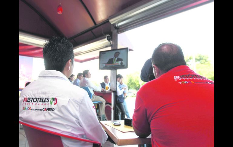 Jalisco | Afuera del edificio del Canal 7, panistas, priistas y otros grupos se manifestaron Militantes de partidos violan el pacto de neutralidad Afuera del edificio del Canal 7, panistas, priistas y otros grupos se manifestaron en torno al horario del debate local Por: EL INFORMADOR 11 de junio de 2012 - 03:01 hs GUADALAJARA, JALISCO (11/JUN/2012).- Propaganda de todo tipo, militantes agitando banderas políticas —principalmente del PRI y del PAN—, vecinos que aceptaron las condiciones de seguridad y jóvenes opositores del Partido Revolucionario Institucional que se plantaron a las afueras del Sistema Jalisciense de Radio y Televisión (SJRTV), caracterizaron el exterior del inmueble donde se llevó a cabo el segundo debate entre los candidatos a la gubernatura de Jalisco. Antes de las 10:00 horas las instalaciones de la televisora lucían protegidas con vallas y elementos de la Secretaría de Seguridad Pública del Estado, Protección Civil y la Secretaría de Vialidad evitaron el paso de cualquier peatón que no tuviera la acreditación oficial que entregó el Instituto Electoral y de Participación Ciudadana de Jalisco (IEPC). Unos minutos antes de las 10:00 llegó una camioneta azul de donde bajaron una decena de jóvenes, quienes comenzaron a ondear las banderas del PAN. Sólo 10 minutos estuvieron y se marcharon. Los candidatos ingresaron por la calle de Reforma y no por la puerta principal, que está sobre Avenida México. A principios de esta semana, el Gobierno del Estado, el IEPC y los partidos políticos hicieron un pacto de civilidad, el cual consistió entre otras cosas en evitar que las porras de los candidatos se manifestaran en las inmediaciones de C7, con el fin de evitar lo que ocurrió en el primer debate en las instalaciones de Canal 44, cuando las porras del PAN y PRI se enfrentaron a golpes. El acuerdo no fue cumplido: los panistas se plantaron sobre el cruce de Avenida México y Américas; otro grupo tomó Avenida México y López Mateos. En ambas vialidades los simpatizantes de Fernando Guzmán aprovecharon para efectuar una pega de calcomanías y repartir propaganda. El candidato a la Presidencia de Guadalajara, Alberto Cárdenas Jiménez, quien también asistió al debate, aprovechó para circular sus bicicletas publicitarias sobre la vialidad. El PRI hizo lo suyo: los simpatizantes de Aristóteles Sandoval Díaz colocaron inflables con propaganda frente a las instalaciones del canal. Mientras transcurría la primera ronda del debate, un cuarteto de jóvenes que se identificaron como parte de la agrupación #YoSoy132 extendieron una manta en la cual se leía “Aris=Peña. No+PRI”. Más tarde, otra decena de muchachos que dijeron ser parte del mismo movimiento portaban tres mantas azules en las cuales arremetían en contra de Enrique Alfaro Ramírez, de Movimiento Ciudadano, y del priista Aristóteles Sandoval Díaz. Uno de los jóvenes entrevistados se identificó con nombres diferentes cuando se le preguntó en dos ocasiones distintas, y dijo ser estudiante de la “carrera de Ciencias Sociales” de la Universidad de Guadalajara, la cual no existe en grado de licenciatura. Más tarde, voceros del colectivo #YoSoy132 negaron que cualquiera de los grupos de C7 perteneciera a esa organización. En uno de los restaurantes de “burritos” que se ubica frente al canal, parte de los equipos de campaña de los cinco candidatos a la gubernatura vieron el debate juntos y de manera respetuosa. De hecho, el ambiente, en general, fue tranquilo, lo cual evitó que en la zona se registraran problemas viales. El único incidente fue al término del debate, cuando por las calles Francisco Rojas González y Reforma elementos de Seguridad Pública del Estado agredieron a dos reporteras, y cuando, a la salida de los candidatos, sus grupos de seguridad provocaron que aumentara el tráfico durante unos momentos. VOCESSe lanzan retos al salir de la televisión “Alfaro tiene compromiso con televisora”: Guzmán El candidato del PAN, Fernando Guzmán Pérez Peláez, fue el primero en ofrecer una entrevista con medios de comunicación tras el debate. Primero se dijo ganador del ejercicio organizado por el Instituto Electoral y luego invitó a Aristóteles Sandoval (PRI) y Enrique Alfaro (Movimiento Ciudadano) a declarar “ante la máquina de la verdad, el polígrafo, si hay alguna relación con la delincuencia o si recibieron en sus gobiernos algún dinero indebido. Yo estoy también dispuesto”. Y tercero, dejó una pregunta para el aspirante por el Movimiento Ciudadano, en el sentido de un supuesto apoyo de una televisora local: “¿Tiene algún compromiso en lo oscurito con Televisa?”. —¿Puede ser más específico en su denuncia? —Hay un arreglo, ustedes pregúntenle. Creo que tiene acuerdos preferenciales. El panista aseguró que tiene el voto de todos los panistas: “No hay fractura con el gobernador (Emilio González)”, dijo, y se mostró de acuerdo con un tercer debate. “Aristóteles se despeinó el copete” : Alfaro Enrique Alfaro, candidato del Movimiento Ciudadano, fue el segundo en hablar ante los medios luego del debate. “Me siento muy contento, orgulloso de este debate. Hoy se confirmó que, así como hace algunas semanas nadie me volteaba a ver, ahora mis adversarios nos hicieron el primer lugar”. —Fernando Guzmán dice que tiene un acuerdo en los oscurito con una televisora. ¿Qué le responde? —Yo no hablaré mal, le tengo respeto. Ya le contesté que no soy culpable de su tragedia electoral. —¿Y qué le responde a los señalamientos de Aristóteles Sandoval, sobre sus negocios con el “Güero” Barba, Raúl Padilla y Eduardo Rosales? —Que por primera vez se le despeinó el copete y se desesperó. Decir eso no tiene problema, el asunto es sostenerlo. Que me diga qué negocio tengo. Sólo contestaremos levantando la cabeza y caminando para adelante. Aristóteles no ha podido aclarar su relación con quien encabeza la principa