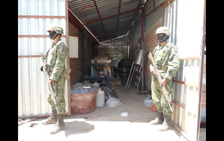 Jalisco | El aseguramiento de la fábrica de droga sintética es el número 21en Jalisco Militares desmantelan narcolaboratorio en Yahualica El aseguramiento de la fábrica de droga sintética es el número 21en Jalisco; se aseguró droga, sustancias químicas y material diverso Por: EL INFORMADOR 1 de abril de 2011 - 08:36 hs Soldados resguardan en narcolaboratorio localizado en el poblado de Río Colorado. ESPECIAL / YAHUALICA, JALISCO (01/ABR/2011).- Constantes operativos militares realizados en el municipio de Yahualica de González Gallo, Jalisco, dieron como resultado, en una última estrategia militar, la localización de un narcolaboratorio. Soldados de la V Región Militar informaron que en base a trabajos de inteligencia y denuncias anónimas, acudieron al poblado de Río Colorado, ubicado en el citado municipio, donde encontraron el narcolaboratorio en el que decomisaron 700 gramos de la droga sintética conocida como crystal. Sin embargo no hubo personas detenidas. Con este aseguramiento ya son 21 narcolaboratorios desmantelados por el Ejército Mexicano en tierras jaliscienses. Droga y sustancias químicas aseguradas: • 120 kilogramos de metanfetamina en proceso de cristalización. • 600 litros de alcohol. • 20 litros de sustancias químicas desconocidas. • 400 litros de tolueno. • 200 litros de acetato de propeno. • 150 kilogramos de nitrato de sodio. Material diverso: • Dos destiladoras. • Un quemador eléctrico. • Un horno metálico. • Una mascarilla. • Un par de guantes. EL INFORMADOR / O. RUVALCABA Temas Seguridad Ejército Narcolaboratorio Lee También Detienen a asesino de joven en partido de futbol Tras persecución policial, localizan 70 kilos de marihuana en Tuxpan Policía de Zapopan realiza cinco detenciones en una semana Omar 'N' es vinculado a proceso por presunto abuso sexual infantil agravado Recibe las últimas noticias en tu e-mail Todo lo que necesitas saber para comenzar tu día Registrarse implica aceptar los Términos y Condiciones