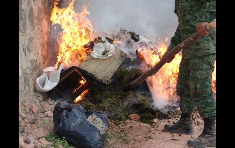 Jalisco | Denuncias ciudadanas Militares realizan operativos en la Entidad; no hay detenidos Aseguran armas, vehículos y diversas cantidades de droga Por: EL INFORMADOR 21 de mayo de 2011 - 04:30 hs En el poblado de “El Tuitan”, del municipio de Tequila, personal castrense incautó 500 kilos de mariguana que después incineró.ESPECIAL / GUADALAJARA, JALISCO (21/MAY/2011).- Derivado de denuncias ciudadanas anónimas, elementos de la Secretaría de la Defensa Nacional, destacamentados en la Décimo Quinta Zona Militar, dio a conocer que en varios operativos realizados en la Entidad, incluso en los límites con el Estado de Michoacán, logró el aseguramiento de varias cantidades de drogas, armas y vehículos. Uno de los operativos fue llevado a cabo en la población de “El Tuitan”, en el municipio de Tequila, Jalisco, donde al atender una denuncia ciudadana, logró localizar 27 costales que estaban ocultos entre arbustos, los cuales en su interior contenían mariguana, dando un peso aproximado de 500 kilogramos, mismo que fue incinerado en el lugar del hallazgo. El otro operativo, también ocurrió en el municipio de Tequila, pero en la población conocida como “El Zapote”, donde los militares también aseguraron 390 kilogramos de mariguana. Posteriormente, el personal castrense acudió hasta los límites con el Estado de Michoacán, específicamente por el lado del municipio de Tepalcatepec, donde al realizar patrullajes terrestres, luego de varias denuncias anónimas en las que reportaban presencia de gente armada en la zona logró el aseguramiento de un arsenal, un chaleco antibalas y una camioneta blindada. Armamento y vehículos decomisados Un fusil de asalto tipo AK-47, del calibre 7.62X39, de los tambie´n conocidos como “cuernos de chivo”. Un lanzacohetes, calibre .66 milímetros. Un cohete antitanque del calibre .66. Una granada de fragmentación. Tres cargadores para diferentes calibres. 70 cartuchos de diversos calibres. Cuatro chalecos antibalas. Una camioneta marca Chevrolet, de modelo reciente y sin placas, la cual cuenta con alto nivel de blindaje. ¿Cómo denunciar? Para atención de la ciudadanía la Sedena cuenta con los siguientes números telefónicos: 36-58-17-05, 38-32-10-37 y los siguientes correos electrónicos: denunciav_r_m_@hotmail.com, denunciavrm@yahoo.com y zonamilitar_15@yahoo.com.mx. Temas Seguridad Operativos de Seguridad Decomisos de droga en Jalisco Recibe las últimas noticias en tu e-mail Todo lo que necesitas saber para comenzar tu día Registrarse implica aceptar los Términos y Condiciones