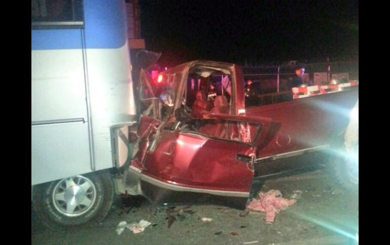 Jalisco | La camioneta en la que viajaba la víctima impactó por detrás al camión de pasajeros Muere hombre al chocar contra camión en Zapopan Según testigos, la camioneta en la que viajaba la víctima impactó por detrás al camión de pasajeros Por: EL INFORMADOR 14 de octubre de 2015 - 16:11 hs El accidente ocurrió la madrugada de este miércoles sobre la carretera a Colotlán. ESPECIAL / Bomberos de Zapopan GUADALAJARA, JALISCO (14/OCT/2015).- Una persona murió la madrugada de este miércoles al impactarse la camioneta en la que viajaba contra la parte trasera de un camión de pasajeros. Lo anterior, sobre la carretera a Colotlán, en Zapopan, informó Bomberos y Protección Civil municipal. Fue minutos después de las doce de la noche que las unidades de rescate se dirigieron al kilómetro 3.5 de la carretera a Colotlán justo al cruce con Las Palmas, a la altura del fraccionamiento Palermo. En el sitio encontraron que una camioneta había chocado contra la parte trasera de un camión de pasajeros, número económico 709-03 de la empresa Premiere. De acuerdo a testimonios recabados por las autoridades, al parecer el camión se hallaba detenido cuando la camioneta, en la que viajaban tres personas, se impactó contra éste. Del hecho falleció quien fue identificado como Donaciano Salvador González. Dos acompañantes más resultaron con lesiones, uno regular y otro grave, quienes fueron trasladados al puesto de socorros por una unidad de Servicios Médicos Municipales. Una persona, Albino Guadalupe Macedonio, quedó en calidad de detenido. No se precisó si éste era el chofer del autobús. Temas Seguridad Accidentes con muertes en Jalisco Protección Civil Zapopan Lee También Trabajadores del SAT se manifiestan en Jalisco Maiceros toman carreteras y autopistas en Jalisco Detienen a supuestos involucrados en jornada violenta en Chiapas Joven que disparó a David Cohen afirma que le ofrecieron dinero Recibe las últimas noticias en tu e-mail Todo lo que necesitas saber para comenzar tu día Registrarse implica aceptar los Términos y Condiciones