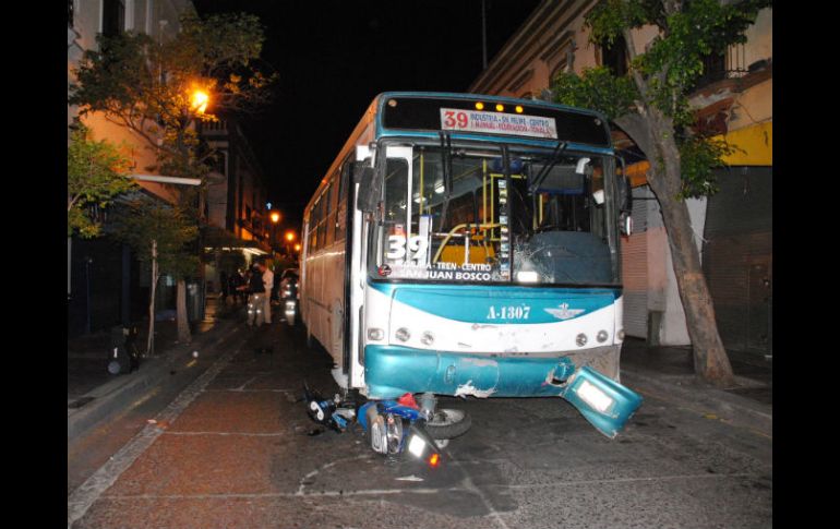 Jalisco | Se impacta con un camión urbano Muere motociclista en choque en la Zona Centro de Guadalajara Suman a 36 las víctimas mortales por el transporte público Por: EL INFORMADOR 20 de agosto de 2011 - 05:24 hs El accidente ocurrió en las calles de Juan Manuel y González Ortega, en el centro de la ciudad. O. RUVALCABA / GUADALAJARA, JALISCO(20/AGO/2011).- Un grupo de jóvenes que se dirigían a sus casas después de salir de la escuela preparatoria, fueron embestidos por una unidad del transporte público; uno de ellos murió. El accidente ocurrió alrededor de las 21:30 horas de este viernes, en el cruce de Juan Manuel y González Ortega, en la Zona Centro de Guadalajara. De acuerdo con lo explicado por elementos de la Policía de Guadalajara, la víctima mortal identificada como Miguel Omar Vázquez Félix, de 16 años y su hermano Moisés de 18, iban en una motocicleta de bajo cilindraje, y en otras dos motos iban amigos y un pariente más de ellos, circulando por la calle de González Ortega y que presuntamente tenía la luz verde del semáforo. Mientras que por calle de Juan Manuel iba un camión urbano de la ruta 39, que de acuerdo con testigos del hecho no respetó la preferencia vial de los motociclistas en ese momento y atropelló a un par de ellos que salieron proyectados al menos 15 metros donde ocurrió el impacto. De manera inmediata testigos y amigos de las victimas pidieron el apoyo de ambulancias municipales, que llegaron en pocos minutos al lugar del accidente; los paramédicos declararon muerto a Miguel Omar debido a que sufrió trauma de cráneo, mientras que Moisés fue atendido y su estado de salud fue reportado como delicado. Fue tal impacto entre el camión y la motocicleta que ésta última quedó incrustada en la parte inferior del autobús. Elementos de la Policía tapatía arrestaron a José Miguel Benítez Hernández, de 26 años, chofer del camión A1307 de la ruta 39, que pretendía escapar. Mientras esto ocurría otro hermano que viajaba en otra motocicleta también de bajo cilindraje al detenerse y dejar su vehículo a pocos metros del accidente le fue robada. Personal del Instituto Jalisciense de Ciencias Forenses y de la Procuraduría estatal acudieron a realizar las indagatorias del caso. Con esta muerte ya suman 36 víctimas mortales donde se ven involucrados camiones del transporte público. EL INFORMADOR / OMAR RUVALCABA Temas Atropello Vialidad Centro Histórico Lee También ¿Y la ampliación de la Línea 1? Cuando las cosas se hacen bien Preferencia y circulación Romería de la Virgen de Zapopan 2025: cierres viales, transporte y operativo de seguridad Recibe las últimas noticias en tu e-mail Todo lo que necesitas saber para comenzar tu día Registrarse implica aceptar los Términos y Condiciones