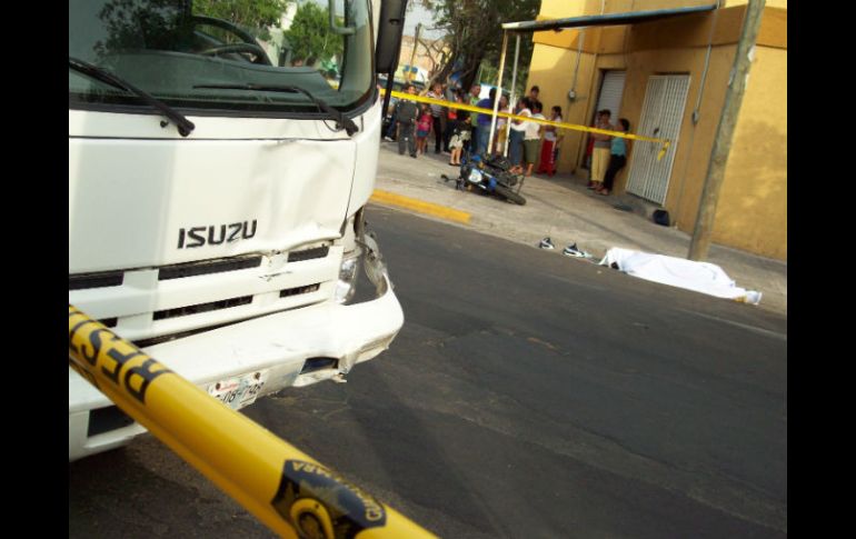 Jalisco | De acuerdo con testigos, el motociclista se atravesó al camión en un cruce Muere motociclista impactado por camión lechero De acuerdo con testigos, el motociclista se atravesó al camión en un cruce, éste no pudo frenar y lo impactó de lleno Por: EL INFORMADOR 26 de abril de 2013 - 19:21 hs La identidad del motociclista se desconoce. / GUADALAJARA, JALISCO (26/ABR/2013).- La tarde de este viernes murió un motociclista tras ser impactado por un camión repartidor de leche en la colonia Santa María, en Guadalajara. El accidente tuvo lugar en el cruce de Santa Beatriz y San Esteban alrededor de las 17:30 horas. De acuerdo a testigos en el lugar, el conductor del camión repartidor de leche circulaba en una Isuzu blanca, placas JS-08-748, sobre la calle de Santa Beatriz --que tiene preferencia por ser avenida de doble sentido--, cuando justo en el cruce se atravesó el motociclista sin respetar el alto, además de que iba a buena velocidad; el conductor del camión no pudo frenar y lo impactó de lleno, lo que provocó que el motociclista "volara" alrededor de 12 metros en dirección hacia la esquina frente al golpe, lo que lo dejó muerto casi al instante. El conductor del camión es José Guadalupe Ramírez Hernández, de 28 años, vecino de la colonia Heliodoro Hernández Loza, quien fue detenido por policías de Guadalajara para ponerlo a disposición de la Fiscalía General, que determinará si hubo responsabilidad. Sobre la identidad del motociclista, se desconoce, pues incluso la moto donde viajaba, una Yamaha azul, no tenía placas de circulación; además de que nadie de los vecinos presentes que se acercaron para ver el incidente lo reconocieron. Temas Seguridad Accidentes con muertes en Jalisco Lee También Buscan incentivar la comercialización de artesanías en Jalisco Tequila recibirá certamen que reconoce las experiencias turísticas más destacadas de México Inauguran el nuevo centro de distribución Alsea en Tonalá, el segundo más grande de México PRI Jalisco viajará a la Cámara de Diputados para exigir un presupuesto justo para el Estado Recibe las últimas noticias en tu e-mail Todo lo que necesitas saber para comenzar tu día Registrarse implica aceptar los Términos y Condiciones