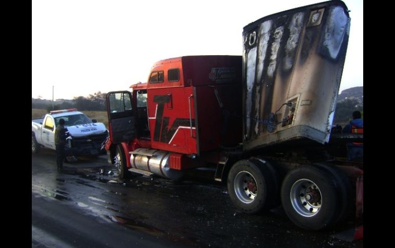 Jalisco | El percance fue protagonizado por dos camiones de carga y una unidad de la SVyT Muere una persona en accidente en San Juan de Los Lagos El percance fue protagonizado por dos camiones de carga y una unidad de la SVyT Por: EL INFORMADOR 23 de noviembre de 2011 - 18:09 hs El accidente ocurrió en el libramiento conocido como San Juan de los Lagos. / SAN JUAN DE LOS LAGOS, JALISCO (23/NOV/2011).- Dos camiones de carga de grandes dimensiones se estrellaron de frente, además en el mismo accidente participó una unidad de la Secretaria de Vialidad y Transporte; uno de los conductores murió. La Unidad Estatal de Protección Civil y Bomberos Jalisco (UEPCBJ) informó que alrededor de las 5:50 horas de este miércoles, acudieron prestar el auxilio, en el libramiento conocido como San Juan de Los Lagos, a la altura del kilómetro ocho. Los “tragahumos” estatales al llegar encontraron que el choque había ocurrido en un puente, ubicado en el lugar mencionado; estos eran un tráiler International, con placas 839-AH-2 del Servicio Público Federal, además que podía leer la razón social Transportes Valadez, del Municipio de Aguascalientes. El chofer de éste vehículo de carga, que no fue identificado, fue trasladándo de urgencia en estado grave a un hospital de la cabecera municipal, después de que su camión quedara con la caja de carga, colgando y calcinada. El segundo vehículo, es un tráiler Kenworth, con placas 560-VZ-2, y razón social Transportes Rogasa de Valles, el cual cayó del puente de una altura aproximada a los 10 metros y su conductor perdió la vida después del fuerte impacto. Él fue reconocido como Mónico Escareño Ramírez, del cual se ignora su edad y domicilio. Además la patrulla U-F-802 de tránsito, se vio involucrada en este fuerte accidente, su conductor salió con heridas de gravedad, ya que uno de los camiones de carga se estrelló de frente contra ésta. Por su parte, la Procuraduría estatal acudió al lugar para iniciar las investigaciones del caso. EL INFORMADOR/ OMAR RUVALCABA Temas Seguridad Accidentes con muertes en Jalisco Lee También Denuncia en su contra es para ocultar un fraude: Hermana de Omar "N" Adiós a Diane Keaton, ganadora del Oscar y musa de Woody Allen Protección Civil reabre el malecón de Puerto Vallarta Muere la actriz Diane Keaton a los 79 años Recibe las últimas noticias en tu e-mail Todo lo que necesitas saber para comenzar tu día Registrarse implica aceptar los Términos y Condiciones