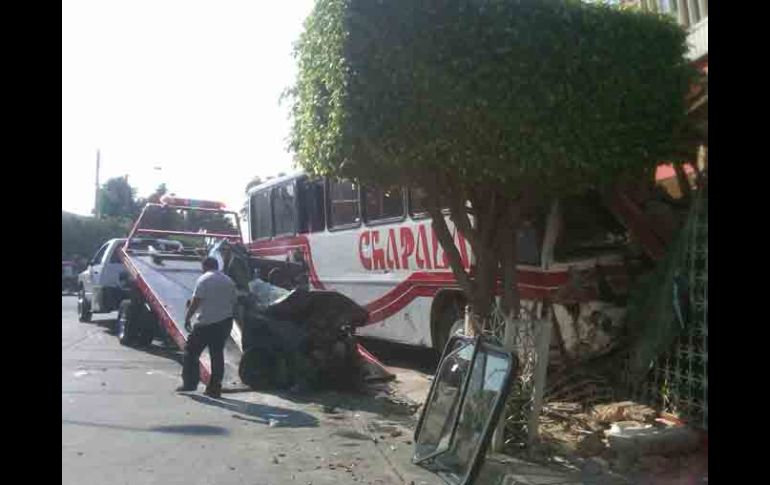Jalisco | Tres jóvenes que viajaban en un auto y el chofer de un camión Mueren cuatro personas en accidente vial en Guadalajara Los protagonistas del percance perdieron la vida; tres jóvenes que viajaban en un Chevy y el conductor de un camión Por: EL INFORMADOR 22 de mayo de 2011 - 09:48 hs La imagen muestra el escenario en donde se desataron los hechos. O. RUVALCABA / GUADALAJARA, JALISCO (22/MAY/2011).- Un choque entre tres vehículos dejó como saldo cuatro personas fallecidas, autos destrozados y serios daños a una vivienda, esto en la colonia San Carlos, en el municipio de Guadalajara. El accidente se registró esta mañana en el cruce de la calle Violeta y Nicolás Bravo en la mencionada colonia, donde los involucrados perdieron la vida. Según las autoridades, un camión de la línea Chapala viajaba por la calle Violeta cuando impactó a un Chevy, en color azul, con placas JA9289, arrastrándolo al menos 30 metros para terminar estrellados en contra de una casa que sufrió severos daños en su estructura. Además, en el trayecto de arrastre fue chocado un Cavalier que se encontraba estacionado, éste quedó a unos 50 metros del lugar del accidente. Se menciona que murieron cuatro jóvenes que iban a bordo del Chevy y que sólo uno fue identificado con el nombre de Livier Ramírez Cuellar, de 25 años, vecina de la colonia Valle del Álamo. Al lugar acudieron paramédicos de la Cruz Roja y Cruz Verde para atender a los involucrados en el accidente, sin embargo sólo pudieron llevarse al chofer del camión a la Cruz Verde en estado de salud regular, posteriormente fue dado de alta. Los aún no identificados fueron llevados a la morgue de la ciudad en espera de que sean reconocidos y reclamados por sus familiares. EL INFORMADOR / OMAR RUVALCABA Temas Seguridad Accidentes con muertes en Jalisco Cruz Verde Lee También Lluvias dejan 29 muertos en un día en México Astros de Jalisco doblega a Xalapa y se pone a un juego de la Final de Zona Escuela Gómez de Mendiola celebra sus primeros 75 años al servicio de los tapatíos Proyectan expansión de Placencia Muebles Recibe las últimas noticias en tu e-mail Todo lo que necesitas saber para comenzar tu día Registrarse implica aceptar los Términos y Condiciones