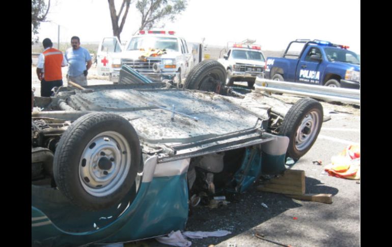 Jalisco | Fue a la altura del crucero de sobre la Autopista Zapotlanejo-Guadalajara Mueren cuatro por volcadura en autopista a Zapotlanejo Fue a la altura del crucero de sobre la Autopista Zapotlanejo-Guadalajara Por: EL INFORMADOR 26 de mayo de 2012 - 15:50 hs Un ''Vocho'' con cinco pasajeros se volcó sobre la Autopista Zapotlanejo-Guadalajara / ZAPOTLANEJO, JALISCO (26/MAY/2012).- Dos personas adultas y dos menores de edad perdieron la vida al volcarse el vehículo en el que viajaban. El conductor se encuentra grave. Minutos antes de las 16:00 horas se reportó en la cabina de comunicaciones de la Policía Municipal de Zapotlanejo, de la volcadura de un auto compacto, sobre la Autopista Zapotlanejo-Guadalajara, a la altura del kilómetro 15, justo donde convergen los cruceros hacia la Región de los Altos y a Zapotlanejo. Al arribo de las autoridades pidieron el apoyo de paramédicos de la Cruz Roja, quienes a su llegada corroboraron el deceso de cuatro personas y lesiones de gravedad a un quinto pasajero. En el sitio fue hallado con las llantas hacia arriba un auto de la marca Volswagen sedan, de los conocidos como "Vochos", de modelo atrasado, verde, con las placas de circulación JJE-8637. Al interior del automotor fueron encontradas dos mujeres sin vida, quienes fueron identificadas con los nombres de Berenice Trujillo Ibarra, de 42 años de edad, aproximadamente, y Verónica Alejandra, de 60 años. Afuera del vehículo quedaron los cuerpos sin vida de los menores Pedro César Ventura, de seis años de edad, y otra menor de mismos apellidos, de aproximadamente tres años de edad. Mientras que el conductor y padre de familia, de nombre César Ventura, de 43 años de edad, fue trasladado en condición de salud grave, hasta las instalaciones de la Cruz Roja Zapotlanejo y posteriormente al Antiguo Hospital Civil de Guadalajara, en calidad de detenido. De acuerdo con las primeras pesquisas, se presume que el vehículo pudo haber sido impactado en la parte trasera por otro automotor, ya que presentaba un impacto en la parte posterior. Los cuerpos fueron enviados hasta el Servicio Médico Forense (Semefo) de esta ciudad a la espera de que sean reclamados de manera oficial por algún familiar. Temas Seguridad Accidentes con muertes en Jalisco Cruz Roja Lee También Detienen a presunto homicida en Lomas de Oblatos Puerto Vallarta es reconocida como la mejor ciudad pequeña de Latinoamérica Suspenden clases en estos 9 municipios de Jalisco ante el paso de tormenta tropical 'Raymond' Clausuran centro de rehabilitación en Tonalá por posibles delitos Recibe las últimas noticias en tu e-mail Todo lo que necesitas saber para comenzar tu día Registrarse implica aceptar los Términos y Condiciones