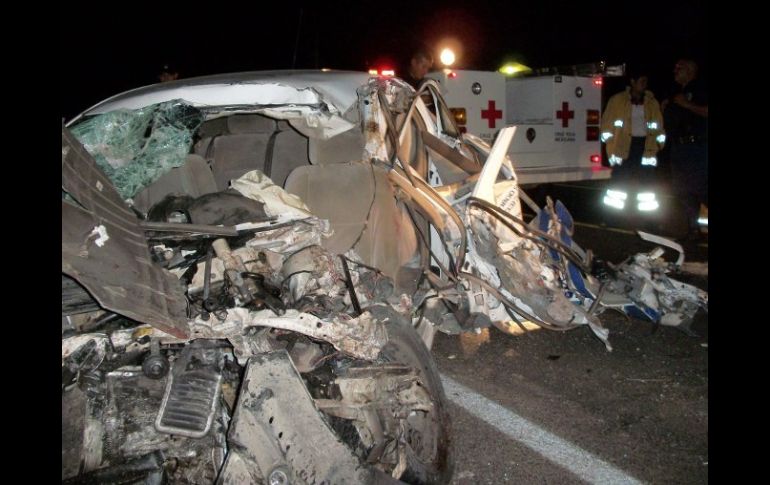 Jalisco | El auto intentó rebasar en una curva y se estrelló contra un torton Kenworth Mueren dos hombres y una mujer resulta herida en un choque frontal El accidente se produjo, cuando el auto intentó rebasar en una curva y se estrelló contra un torton Kenworth Por: EL INFORMADOR 2 de octubre de 2011 - 16:16 hs Choque de frente a la altura del kilómetro 214, mejor conocido como el rancho Los Zorrillos. ESPECIAL. / ZAPOTLANEJO, JALISCO (02/OCT/2011).- Dos personas fallecidas y una herida de gravedad fue el resultado de un choque entre un auto sedan y un camión de carga, ocurrido en la carretera que conduce de Zapotlanejo a Tototlán, la noche de este sábado. Fue alrededor de las 20:35 horas del sábado cuando paramédicos de la Cruz Roja y Bomberos de Zapotlanejo recibieron varias llamadas telefónicas reportando un choque de frente en la mencionada vía a la altura del kilómetro 214, mejor conocido con el rancho Los Zorrillos. Al llegar los técnicos de emergencias encontraron sin vida a dos personas sobre la cinta asfáltica, por lo que se abocaron a atender a una mujer identificada como Pilar Ruiz Ramírez, de 23 años, con domicilio en Atotonilco el Alto, quien se encontraba prensada dentro de un auto Toyota Corolla, con placas JFM-9606, perteneciente a la empresa denominada del grupo de seguridad CSIS. Tuvo que ser necesario que los rescatistas utilizaran el equipo hidráulico mejor conocido como "quijadas de la vida". De acuerdo con testigos, el accidente se produjo, cuando el auto intentó rebasar en una curva y se estrelló de frente contra un torton Kenworth, con matrícula MW-27714; el chofer no fue localizado. Por el impacto fallecieron en la escena Manuel Rosa Rodríguez, de 40 años, e Israel Alejandro García Solorio, de 24 años, mientras que su acompañante fue enviada al Centro Médico de Occidente para su atención médica, reportada como grave. Al lugar acudieron elementos de la Policía Federal y el agente del Ministerio Público adscrito a aquella localidad para realizar las investigaciones del caso. Por su parte, personal del Servicio Médico Forense ( Semefo) trasladó los cuerpos a la morgue de la Zona Metropolitana de Guadalajara, en espera de que sean reconocidos y reclamados de manera oficial. EL INFORMADOR / OMAR RUVALCABA Temas Seguridad Accidentes con muertes en Jalisco Semefo ZMG Lee También Escuela Gómez de Mendiola celebra sus primeros 75 años al servicio de los tapatíos Proyectan expansión de Placencia Muebles Omar 'N' es vinculado a proceso por presunto abuso sexual infantil agravado Inicia entrega de tarjetas Pensión Mujeres Bienestar en Jalisco; ¿cómo y dónde recogerla? Recibe las últimas noticias en tu e-mail Todo lo que necesitas saber para comenzar tu día Registrarse implica aceptar los Términos y Condiciones