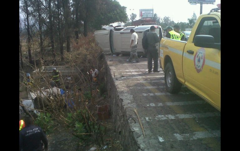 Jalisco | El percance ocurrió en la carretera Guadalajara-Morelia Mueren dos personas en accidente Dos sujetos que conducían en la carretera Guadalajara-Morelia perdieron la vida tras impactarse con otro auto que iba en sentido contrario Por: EL INFORMADOR 13 de mayo de 2013 - 09:25 hs Al lugar acudieron bomberos y paramédicos; el tráfico por la zona se puso lento. / GUADALAJARA, JALISCO (13/MAY/2013).- Dos hombres, vecinos del municipio de Tonaya, fallecieron al chocar su auto en contra de una camioneta en la carretera que conduce de Guadalajara a Morelia. Ambos vehículos quedaron destruidos. Los hechos fueron reportados alrededor de las 07:49 horas de este lunes, en la citada vía a la altura de un centro comercial del municipio de Tlajomulco de Zúñiga, por lo que acudieron paramédicos y bomberos de la localidad. Al llegar, los rescatistas encontraron a José Carlos Pérez de 29 años de edad, y a su esposa Aracely Neri Aguirre, de 26 años, heridos de manera leve, así como sus a dos hijos, quienes iban en una camioneta Chevrolet Tahoe dorada, con placas de circulación JKK-7028, la cual estaba volcada. En un desnivel de la carretera se encontraba un auto Volkswagen Pointer blanco destruido, y dentro de éste, dos sujetos muertos, uno de ellos aparentaba una edad de 45 años, mientras que su acompañante fue identificado por documentos oficiales como Vicente Zúñiga Reynaga, de 69 años, vecino de Tonaya. De acuerdo con elementos de la Policía municipal, los hombres que abordaban el Pointer circulaban por la citada carretera en el sentido de Sur a Norte, cuando el chofer perdió el control del compacto e invadió los carriles contrarios. Tras esto, se impactó de frente con la camioneta Tahoe, provocando que ambos se volcaran. El tráfico se vio afectado. Posteriormente, los cuerpos fueron rescatados por los bomberos municipales, ya que se encontraban prensados dentro del auto siniestrado. Luego de las maniobras, Zúñiga Reynaga y su acompañante fueron llevados a la morgue de la Zona Metropolitana de Guadalajara en espera que sean identificados. Muere taxista atropellado Un taxista murió atropellado en la carretera a Nogales; el presunto culpable escapó del lugar. Los hechos ocurrieron en la citada vía, a la altura del poblado de La venta del Astillero, donde murió el taxista identificado como Jorge Alberto Álvarez Rivas. El hombre conducía un carro Nissan Tsuru, del Sitio 27, con placas de circulación 1910-GMT de la Zona Metropolitana de Guadalajara (ZMG). De acuerdo con una de las pasajeras del taxi, una de las llantas del carro se ponchó, por lo que Jorge Alberto intentó cruzar la carretera para buscar a un llantero, pero fue atropellado por un vehículo de color negro que no fue localizado. El chofer falleció de manera instantánea y actualmente se encuentra en la morgue metropolitana en espera que sea reclamado por sus familiares. Temas Seguridad Accidentes con muertes en Jalisco Carreteras de Jalisco Lee También Charros de Jalisco inaugura la temporada de invierno de beisbol Brenda Carrera rinde primer informe legislativo Tarde soleada para Guadalajara; no se descarta lluvia Asesinan a balazos a una mujer en Tlaquepaque Recibe las últimas noticias en tu e-mail Todo lo que necesitas saber para comenzar tu día Registrarse implica aceptar los Términos y Condiciones