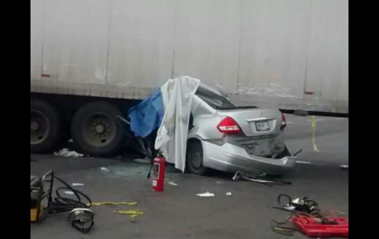 GUADALAJARA, JALISCO (30/AGO/2016).- Un choque ocurrido la mañana de este martes sobre la carretera a Chapala dejó un saldo de dos personas muertas y una más lesionada en estado regular, informó la Unidad Estatal de Protección Civil y Bomberos (UEPCB); las tres estaban prensadas. El hecho se reportó poco después de las seis de la mañana a la altura del kilómetros 13 de la carretera, en las cercanías del rancho Tres Potrillos. Unidades que llegaron al punto encontraron vehículo Nissan Tiida que se había impactado por debajo de la caja de un tráiler. Al parecer chocó de lleno el vehículo porque no encontraron huellas de frenado. Al revisar personal médico se encontró a dos personas muertas, una más con vida. Las tres estaban prensadas en el interior del vehículo por lo que se requirió rescatarlas por medios mecánicos. La persona lesionada presentaba golpes en cráneo y tórax. Las autoridades descartaron que se tratara de un accidente a causa del alcohol pues no se encontraron indicios; se presume que fue la hora y las condiciones (hay un retorno en el punto) lo que fue factor en el hecho. Personal del Servicio Médico Forense acudió para levantar los dos cuerpos.