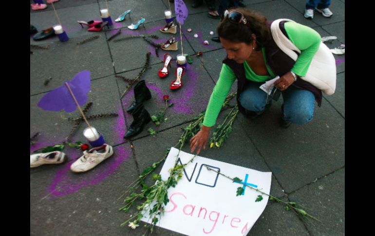 Jalisco | Colocan zapatos en el Centro tapatío Mujeres se manifiestan contra la violencia Junto a los zapatos pusieron flores y un pequeño cartel con el nombre de cada una de las mujeres muertas Por: EL INFORMADOR 22 de enero de 2011 - 04:55 hs En 2010 ocurrieron 81 feminicidios en Jalisco. A. GARCÍA / GUADALAJARA, JALISCO (22/ENE/2011).- “Ni una asesinada más, porque estos zapatos extrañan su andar”, fue una de las frases con las que mujeres de grupos colectivos expresaron ayer su indignación en contra de los feminicidios, en la Plaza de Armas, en el Centro de Guadalajara. La tarde de ayer, cerca de 10 mujeres colocaron pares de zapatos de mujer en el pavimento, para hacer conciencia en las mujeres, pedirles que “se pongan en los zapatos” de quienes han sido asesinadas y, juntas, exigir justicia. Junto a los zapatos pusieron flores y un pequeño cartel con el nombre de cada una de las mujeres muertas. Además, recordaron el asesinato de activistas de derechos humanos en Ciudad Juárez, Chihuahua, así como los 81 feminicidios que ocurrieron en Jalisco durante 2010, que es, hasta el momento, el año con más crímenes de este tipo contra mujeres en la historia del Estado. Asombrados, los que paseaban por el lugar observaban cada uno de los pares de zapatos, que iban desde tenis, hasta zapatillas de tacón. Temas Manifestaciones en Jalisco Municipios Feminicidios Recibe las últimas noticias en tu e-mail Todo lo que necesitas saber para comenzar tu día Registrarse implica aceptar los Términos y Condiciones