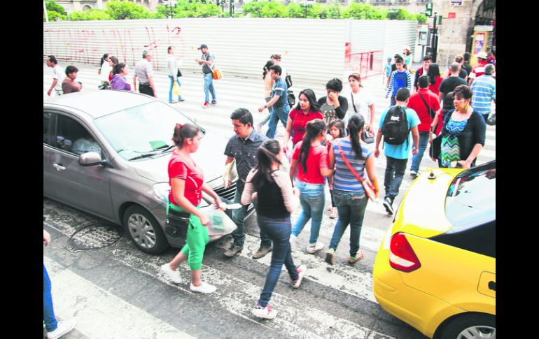 Jalisco | Quienes tienen mayores problemas son las madres de familia y los discapacitados Obras complican cruce de peatones en el Centro Quienes tienen mayores problemas son las madres de familia y los discapacitados Por: EL INFORMADOR 4 de julio de 2015 - 03:38 hs Guadalajara. El paso de los transeúntes se dificulta más por los vehículos que no respetan los pasos de cebra. EL INFORMADOR / P. Franco GUADALAJARA, JALISCO (04/JUL/2015).- Un espacio de poco más de cinco metros es el único que tienen para cruzar los peatones que transitan por 16 de Septiembre y Pedro Moreno, debido a las obras de la Línea 3 del Tren Ligero a la altura de Catedral. Todos los días las cientos de personas que utilizan uno de los cruces más concurridos del Centro Histórico tienen que apretujarse entre teléfonos públicos y puestos de lotería y bajar pronunciados escalones. Aunado a eso tienen que sortear los automóviles que en casi cada alto invaden el paso peatonal; camiones, taxis, carros y hasta calandrias complican más el paso de los transeúntes. Quienes tienen mayores problemas para cruzar son los discapacitados y las madres de familia con carreolas, ya que las rampas se encuentran bloqueadas por la construcción. En un ejercicio de observación realizado por este medio a las dos de la tarde, en cinco semáforos, dos automóviles no respetaron la luz roja y en todos los altos, automotores invadieron el paso de cebra. El principal problema es que las obras del Tren Ligero cerraron dos carriles a la circulación vial, y es tanto el tráfico que se satura ese punto de la vía. Francisco Poe Morales, comisario general de la Policía Vial, aseguró que ante este problema desde hace tres días se encuentra un agente vial en el punto para apoyar a la “banderera” de la obra a agilizar la circulación. “Hay que recordar que esta zona va a estar cerrada y tenemos que buscar una zona peatonal eficiente y segura para el cruce de la gente. Va a haber vigilancia permanente, sobre todo ahora que cerremos Alcalde. Andamos viendo si el cruce lo dejamos ahí o si lo mandamos hasta Avenida Juárez y 16 de Septiembre”, señaló Poe, y afirmó que hasta que definan una ruta segura para el transeúnte, el crucero peatonal se mantendrá en ese punto. Temas Municipios Centro Histórico Línea 3 del Tren Ligero Recibe las últimas noticias en tu e-mail Todo lo que necesitas saber para comenzar tu día Registrarse implica aceptar los Términos y Condiciones