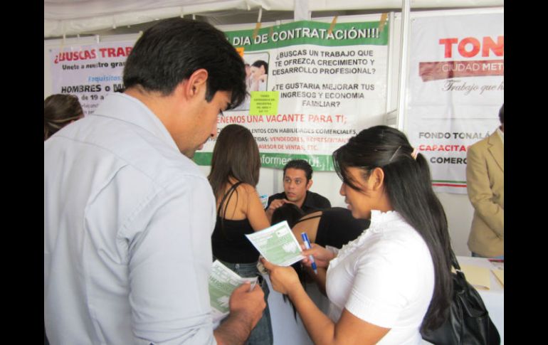 Jalisco | El Sistema Nacional de Empleo acerca oportunidades a los ciudadanos Ofertan más de 3 mil vacantes en Tonalá El Sistema Nacional de Empleo acerca oportunidades de empleo a los ciudadanos Por: EL INFORMADOR 16 de octubre de 2012 - 15:41 hs En la Feria del Empleo participaron 61 empresas. ESPECIAL / TONALÁ, JALISCO (16/OCT/2012).- El Servicio Nacional de Empleo llevo a cabo una Feria del Empleo en el municipio de Tonalá, con la finalidad de generar la vinculación entre quienes ofertan y buscan empleo. Participaron 61 empresas quienes ofertaron un total de 3 mil 669 vacantes en la explanada de Walmart Loma Dorada donde la afluencia de buscadores fue constante. Durante el acto inaugural, el Secretario del Trabajo en el Estado, Ernesto Espinosa Guarro informó que la función del Servicio Nacional del Empleo es vincular el mismo a quienes lo necesitan. “Nosotros no generamos empleo, pero sí ayudamos a buscar empleo a quienes se encuentran en busca de una oferta laboral que cuente con todas las prestaciones de Ley, logrando la vinculación en coordinación con los ayuntamientos del Estado de Jalisco, normalmente en cada feria se ofertan alrededor de 2 mil vacantes, hoy le toca a Tonalá donde seguramente habrá gran cantidad de colocados”. Por su parte, el Presidente Municipal de Tonalá, Jorge Arana Arana, indicó que la manera de abatir la inseguridad en el municipio alfarero, es generando y fomentando empleo, educación y espacios verdes porque son la base para el desarrollo integral. Los días 24 y 25 de Octubre, se llevará a cabo una Feria de Empleo en Multiplazas del Valle en Tlajomulco de Zúñiga y el 30 de Octubre otra más en Puerto Vallarta. Temas Municipios Ayuntamiento de Tonalá Empleo Lee También Clima en Tonalá hoy: el pronóstico para el sábado 11 de octubre de 2025 Bajan lluvias el sábado en Guadalajara, pero se mantiene nublado Con "Raymond" cerca, Guadalajara espera lluvias a esta hora del viernes "Raymond" AMAGA a Jalisco; lo que necesitas saber Recibe las últimas noticias en tu e-mail Todo lo que necesitas saber para comenzar tu día Registrarse implica aceptar los Términos y Condiciones