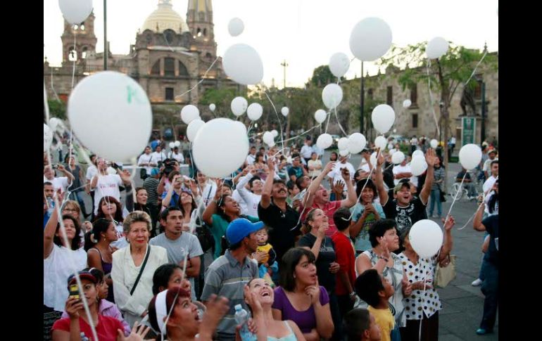 Jalisco | Contemplan brindar apoyo a quienes sean víctimas de un delito Organizaciones ciudadanas piden un alto a la violencia ''Rostros contra la violencia'' pone a disposición de las personas un correo de denuncia ciudadana Por: EL INFORMADOR 23 de marzo de 2011 - 19:01 hs Los marchistas liberaron globos blancos con la leyenda ''No más violencia''. E. PACHECO / GUADALAJARA, JALISCO (23/MAR/2011).- Asociaciones ciudadanas convocaron en general a las personas a participar en una manifestación pacífica, denominada "Rostros contra la violencia", la cual se realizó el día de hoy en punto de las 18:00 horas en la explanada de la Plaza Liberación ubicada en el Centro de la ciudad, donde se congregaron alrededor de 200 personas. Los marchistas liberaron globos blancos con la leyenda "No más violencia", formaron una paloma en símbolo de paz y sostuvieron carteles en los que se podían leer las frases: "Bien muchos por la paz. Por la paz y la armonía" y "Unidos por la paz y la concordia en Jalisco". Entre los grupos presentes estaban Frente Estudiantil Mexicano (FEM), el Grupo Asociación Civil, la Asociación Nacional de Tiendas de Abarrotes A. C. (ANTAB), Organizaciones Unidas de Ayuda Ciudadana A. C. (ORUDAC) y la Confederación de Jóvenes Universitarios (CJU). Los líderes del movimiento, Julio César Hernández, Óscar Hernández y Luis Castillo, llamaron a los asistentes a exigir a las autoridades municipales, estatales y federales que trabajen de manera conjunta y concreten iniciativas de ley que garanticen la seguridad de la población, así como también piden que se forme una comisión permanente que estudie medidas de seguridad eficaces, se reeplanteen los operativos y rondines de las corporaciones policiales, y se instalen mesas de debate con los ciudadanos. El evento contó con el apoyo de comerciantes, abogados, estudiantes y el grupo musical Afrobahía. Es el primero de los que se tienen contemplados como protesta ante la minimización que las autoridades han hecho respecto a los problemas de seguridad en Jalisco. Además de los mítines, el movimiento contempla brindar apoyo a quienes sean víctimas del delito, a través del correo de denuncia ciudadana rostroscontralaviolencia@gmail.com EL INFORMADOR / ANDREA OLSON Temas Manifestaciones en Jalisco Municipios Centro Histórico Lee También Puerto Vallarta es reconocida como la mejor ciudad pequeña de Latinoamérica Suspenden clases en estos 9 municipios de Jalisco ante el paso de tormenta tropical 'Raymond' Clausuran centro de rehabilitación en Tonalá por posibles delitos Viernes de tormentas en Guadalajara; aparecerán a esta hora Recibe las últimas noticias en tu e-mail Todo lo que necesitas saber para comenzar tu día Registrarse implica aceptar los Términos y Condiciones