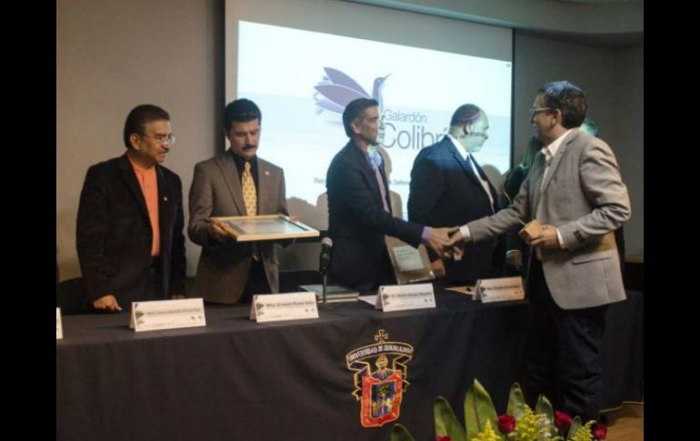 Jalisco | Reconocen el trabajo orientado a la educación cuidado y preservación del medio ambiente Otorgan galardón Colibrí 2015 a cuatro académicos del CUAAD Reconocen el trabajo orientado a la educación, cuidado y preservación del medio ambiente Por: EL INFORMADOR 19 de junio de 2015 - 17:29 hs Reconocen el esfuerzo de los académicos a través de sus investigaciones y proyectos en el tema del medio ambiente. ESPECIAL / www.comsoc.udg.mx GUADALAJARA, JALISCO (19/JUN/2015).- Reconocen labor en favor del medio ambiente por su trabajo orientado a la educación o creación de consciencia en la defensa, cuidado y preservación del medio ambiente, esta mañana académicos del Centro Universitario de Arte, Arquitectura y Diseño (CUAAD) recibieron el galardón Colibrí 2015, organizado por las delegaciones académicas de este campus. El maestro Ernesto Flores Gallo, Rector del CUAAD, destacó el desempeño y entrega de los galardonados, “los cuatro premiados son un referente para la Red Universitaria. Sus esfuerzos en pro del medio ambiente es un orgullo para nuestro campus y para la Universidad de Guadalajara”. En su segunda edición, el galardón Colibrí 2015 fue otorgado en la modalidad de Investigación y difusión a la doctora Silvia Arias Orozco; los doctores David Carlos Ávila Ramírez y José Arturo Gleason Espíndola; en la modalidad de Activismo comunitario, el reconocimiento fue para el maestro Carlos Manuel Orozco. Durante el acto, efectuado en la video aula Silvio Alberti, el doctor Martín Vargas Magaña, secretario general del Sindicato de Trabajadores Académicos de la UdeG (STAUdeG), dijo que el premio Colibrí debe trascender en todos los centros universitarios. “Para el siguiente año esperamos que este reconocimiento, que nació en este campus, se haga extensivo a toda la Red Universitaria, con la finalidad de reconocer el esfuerzo de los académicos a través de sus investigaciones y proyectos en dicho tema”, dijo. La doctora Arias Orozco comentó en entrevista que dicho reconocimiento “es un compromiso profesional y de vida que nos demuestra que vamos por buen camino. Seguiré trabajando en bien del medio ambiente desde la investigación y los proyectos que realizo”. Al finalizar, fue inaugurada la exposición de carteles “El futuro del agua”, montada por el Departamento de Proyectos de Comunicación del CUAAD. Al acto acudió el maestro Marco Antonio Chávez Lecuanda, presidente de la Comisión de Honor y Justicia de las delegaciones académicas del CUAAD, entre otras autoridades universitarias. Temas Educación Premios UdeG Lee También El Plan de Paz para Gaza no es la paz, pero es un camino para lograrla: especialista Suspenden clases en estos 9 municipios de Jalisco ante el paso de tormenta tropical 'Raymond' Lo que el caso Omar Bravo nos obliga a mirar Reconocen a Margarita Aranguren de Alfaro por una vida dedicada al servicio de los demás Recibe las últimas noticias en tu e-mail Todo lo que necesitas saber para comenzar tu día Registrarse implica aceptar los Términos y Condiciones