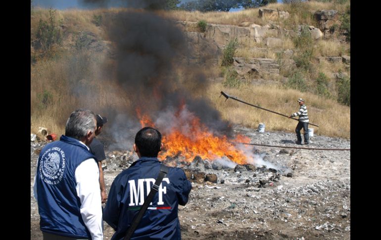 Jalisco | Fueron decomisados en el Estado de Jalisco PGR incinera más de una tonelada de estupefacientes Fueron decomisados en el Estado de Jalisco Por: EL INFORMADOR 15 de octubre de 2010 - 15:06 hs Esta droga se encuentra relacionada con más de mil expedientes. ESPECIAL / GUADALAJARA, JALISCO (15/OCT/2010).- La Procuraduría General de la República (PGR), informó por medio de un comunicado que en cumplimiento al Programa de Destrucción de Narcóticos, incineró diversos estupefacientes en el municipio de Zapopan. Se señala en el documento que en el acto de incineración participó personal operativo y administrativo de la institución, así como el representante del Órgano Interno de Control de la PGR quién dio fe de la autenticidad y peso de la droga destruida que consistió en lo siguiente: Una tonelada 243 kilos 569 gramos 200 miligramos de mariguana. 11 kilos 840 gramos 198 miligramos de semilla de mariguana. Seis kilos 198 gramos 200 miligramos de semilla de amapola. 603 plantas de mariguana. 50 kilos 933 gramos 260 miligramos de metanfetamina. 36 kilos 959 gramos de efedrina. 12 kilos 778 gramos 975 miligramos de cocaína. 648 gramos 400 miligramos de goma de opio. 47 gramos 300 miligramos de benzofetamina. Dos mil 536 pastillas psicotrópicas. Indica la dependencia que la droga se encuentra relacionada con más de mil expedientes. Temas Seguridad PGR Decomisos de droga en Jalisco Lee También Comienza en Jalisco la Campaña Nacional de Vacunación de invierno Charros de Jalisco buscará frenar su racha negativa en juegos inaugurales de la LMP Autos con estas placas deben realizar la Verificación Vehicular antes del 31 de octubre Gaby Cárdenas destaca avances en materia de cuidados en su primer año legislativo Recibe las últimas noticias en tu e-mail Todo lo que necesitas saber para comenzar tu día Registrarse implica aceptar los Términos y Condiciones