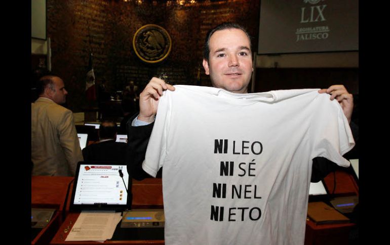 Jalisco | Tienen frases que circulan en redes sociales sobre la pifia del aspirante presdencial Panistas portan playeras; se mofan de error de Peña Nieto Tienen frases que circulan en redes sociales sobre la pifia del precandidato presdencial Por: EL INFORMADOR 8 de diciembre de 2011 - 21:05 hs El presidente del PAN Jalisco, Miguel Monraz Ibarra, con una playera que alude a la pifia de Peña Nieto. / GUADALAJARA, JALISCO (08/DIC/2011).- Los diputados de la fracción parlamentaria del PAN, portaron playeras blancas con letras negras alusivas a las decenas de chistes y frases que circulan en redes sociales y que hacen referencia al reciente episodio en el que el candidato a la presidencia de la República por el PRI, Enrique Peña Nieto no recordó tres libros que macaron su vida en el marco de la FIL. El coordinador de los diputados del PAN, Gustavo Macías, expuso que realizaron este ejercicio "para replicar lo que millones de personas exponen en redes socials en el país, las frases no son de autoría de los diputados, son de redes socials, solo cuestionamos lo que puede representar un presidente que tiene ese grado de ignorancia, saber que todos estamos expuestos a cometer errores, pero un candidato a la presidencia que se siente presidente, no puede cometer estos errrores", dijo. Por su parte, la legisladora del PRI Mariana Fernández, refirió que "nuestro candidato a la presidencia cometió un error, pero es obvio que él ha leído muchos libros en su vida, estudió en la Universidad Panamericana y la Maestría en el TEC de Monterrey, debió de haber leído muchos libros, somos humanos a cualquiera nos pudo pasar". EL INFORMADOR / ZAIRA RAMÍREZ Temas Congreso local Enrique Peña Nieto PAN Jalisco Elecciones México 2012 Lee También Clima en Ciudad de México hoy: el pronóstico para el sábado 11 de octubre de 2025 Astros de Jalisco doblega a Xalapa y se pone a un juego de la Final de Zona Escuela Gómez de Mendiola celebra sus primeros 75 años al servicio de los tapatíos Proyectan expansión de Placencia Muebles Recibe las últimas noticias en tu e-mail Todo lo que necesitas saber para comenzar tu día Registrarse implica aceptar los Términos y Condiciones