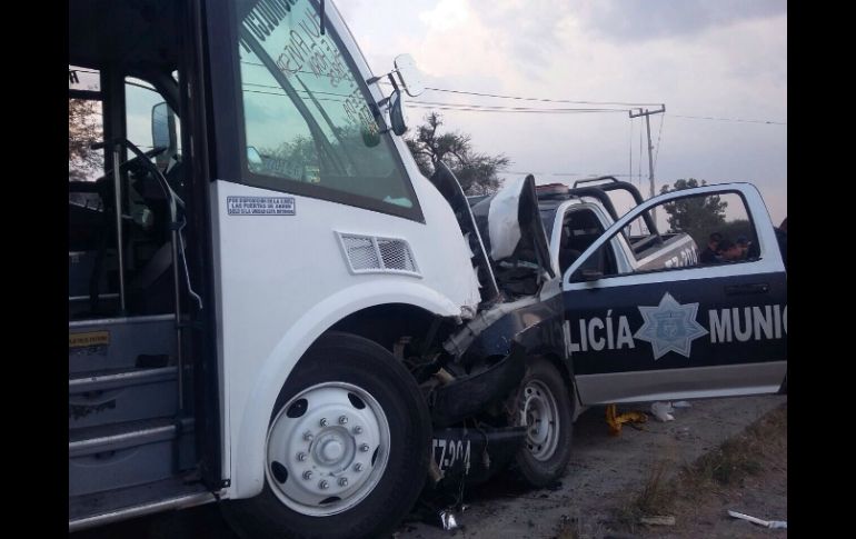 Jalisco | La unidad se impactó de frente contra el camión de la ruta 187 Patrulla de Tlajomulco choca contra transporte público La unidad se impactó de frente contra el camión de la ruta 187 Por: EL INFORMADOR 10 de junio de 2015 - 21:03 hs El accidente ocurre la noche de este miércoles en el fraccionamiento Lomas de la Tejeda. ESPECIAL / GUADALAJARA, JALISCO (10/JUN/2015).- Una patrulla de la Policía de Tlajomulco chocó la noche de este miércoles en contra de una unidad del transporte público en el fraccionamiento Lomas de la Tejeda, lo que dejó a los uniformados lesionados. El reporte del accidente en la carretera a Lomas del Sur, a la altura del citado fraccionamiento, se recibió hacia las 20:00 horas. Fue la unidad TZ-204 la que se impactó de frente en contra de un camión de la ruta 187, placas 720-142-G, conducido por Miguel Ángel Miramontes González, de 26 años de edad. El camión se dirigía hacia Tlajomuclo. Se dio aviso a Servicios Médicos, quienes trasladaron a dos policías lesionados al puesto de socorros. Se trataba de Ubaldo Gonzalo Navarro Corona, quien resultó con lesiones en el pecho; y Javier Alejandro Martínez Olivares, cuyas lesiones no se detallaron. Temas Seguridad Transporte Público Accidentes Policía de Tlajomulco Lee También Conmociones cerebrales, la cuarta lesión más frecuente en partidos de la Conmebol Clima en Tlajomulco de Zúñiga hoy: el pronóstico para el domingo 12 de octubre de 2025 Helicóptero se desploma en Huntington Beach, California; reportan cinco heridos Tres personas resultan lesionadas tras explosión de camión en carretera México-Puebla Recibe las últimas noticias en tu e-mail Todo lo que necesitas saber para comenzar tu día Registrarse implica aceptar los Términos y Condiciones
