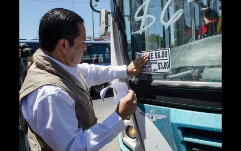 Jalisco | Secretarios de diferentes dependencias pegaron las calcas y repartieron volantes Pegan calcomanías con tarifa del transporte público Secretarios de diferentes dependencias pegaron las calcas y repartieron volantes informativos sobre la tarifa vigente Por: EL INFORMADOR 11 de marzo de 2014 - 17:03 hs Eduardo Almaguer, de la Secretaría de Trabajo y Previsión Social, encabezó la pega de calcomanías. ESPECIAL / GUADALAJARA, JALISCO (11/MAR/2014).- Este mediodía, secretarios de diferentes dependencias del Gobierno estatal se dieron a la tarea de pegar calcomanías de la nueva tarifa de seis pesos en las unidades del transporte público. El titular de la Secretaría del Trabajo y Previsión Social, Eduardo Almaguer Ramírez, encabezó la pega de calcas en unidades de camiones de diversas rutas sobre Periférico Norte al cruce con avenida Federalismo. Eduardo Almaguer dijo que se pretende ir a fondo del problema con el transporte: "Hoy tendrán que sujetarse no solamente a la ley sino a las condiciones sociales que estamos viviendo para que le pongan y le aporten a las condiciones laborales, a las condiciones de las unidades, así como a la planeación de los recorridos y en general mejorar el servicio". Hizo un exhorto a los concesionarios de transporte público, para que salgan públicamente no a comprometerse, sino a implementar acciones concretas, a reconocer que no estuvieron a la altura de las circunstancias y con ello hacer eficiente el servicio que brindan a la ciudadanía. También Magdalena Ruiz Mejía, secretaria de Medio Ambiente y Desarrollo Territorial, apoyó en la tarea pero en el cruce de las avenidas Manuel Ávila Camacho y Circunvalación Jorge Álvarez del Castillo. Ruiz Mejía abordó camiones para informar a los usuarios sobre el precio del pasaje y sobre las acciones para mejorar el servicio de transporte público. De igual manera, se repartieron volantes informativos sobre la tarifa vigente en las unidades y entre la gente que esperaba abordar alguna unidad. Las calcas colocadas indican a los pasajeros que la tarifa es de seis pesos y tres pesos para estudiantes, personas de la tercera edad así como niños menores de doce años. Temas Transporte Público Vialidad Eduardo Almaguer Ramírez Lee También Estos son todos los cambios que tendrá el transporte público por el paso de la Romería Aseguran más huachicol en el municipio de Degollado Continúa la entrega de tarjetas Yo Jalisco Apoyo para el Transporte este 9 de octubre Aliados UNIVA fortalece lazos en la educación Recibe las últimas noticias en tu e-mail Todo lo que necesitas saber para comenzar tu día Registrarse implica aceptar los Términos y Condiciones