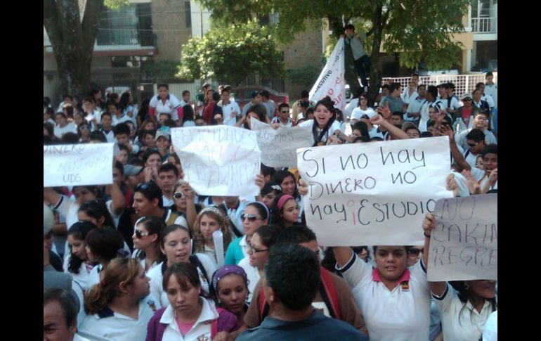 Jalisco | En reunión, solicitan se entreguen recursos de forma escalonada durante cuatro años Pide UdeG a diputados priistas gestionar ampliación de 800 MDP en presupuesto Se reúnen líderes de Universidad con legisladores en la Ciudad de México para pedir se entregue presupuesto de forma escalonada durante cuatro años Por: EL INFORMADOR 22 de octubre de 2010 - 12:36 hs Aspecto de la manifestación de hoy por bachilleres udegeístas de Ocotlán. Continúan las movilizaciones para pedir recursos. R. ZAPATA / GUADALAJARA, JALISCO (22/oOCT/2010).- Los integrantes de la Comisión de Hacienda de la Universidad de Guadalajara (UdeG) viajaron ayer jueves a la Ciudad de México, lugar donde se reunieron con 11 de los 12 diputados federales por Jalisco del Partido Revolucionario Institucional (PRI), para solicitarles gestionen la entrega a la UdeG de 800 millones de pesos de forma escalonada durante 4 años, para de esta manera resarcir el equilibrio 52-48 % de aportación federal y estatal respectivamente, al presupuesto ordinario de la casa de estudios. “Nosotros creemos que uno de los pretextos que tiene el Gobierno Estatal (para no incrementar el presupuesto de la UdeG) es el desequilibrio de las proporciones 52-48 (federal y estatal) que estábamos teniendo”, dijo el secretario general del Sindicato de Trabajadores Académicos de la Universidad de Guadalajara (STAUdeG), Roberto López González. Durante la reunión, celebrada en la oficina del coordinador de los diputados federales del tricolor por el estado de Jalisco, Arturo Zamora Jiménez, la comitiva universitaria encabezada por el rector general, Marco Antonio Cortés Guardado, pidió a los legisladores incorporar a la Universidad de Guadalajara en los temas presupuestarios del Congreso de la Unión. Además de los titulares de la UdeG, y del STAUdeG, acudieron al encuentro en la Capital de la República, el presidente de la Federación de Estudiantes Universitarios (FEU), César Barba Delgadillo, el rector del Centro Universitario de Ciencias Económico Administrativas (CUCEA), Tonatiuh Bravo Padilla, y la directora del Sistema de Educación Media Superior (SEMS), Ruth Padilla Muñoz. Protestan 82 sindicatos académicos en San Lázaro Por otro lado, López González señaló que 82 sindicatos de trabajadores académicos de todo México incluido el de la UdeG, realizarán un plantón en la Cámara de Diputados el próximo martes, justo el mismo día de la reunión que sostendrán autoridades de la UdeG con representes del Gobierno de bajo la intermediación de la Secretaría de Educación Pública (SEP), en donde se espera la presentación de ambas partes de propuestas concretas de solución, con pesos y centavos, al conflicto presupuestario que data desde principios de año. A propósito de dicha reunión, el sindicalista agregó que la Universidad no debería ir por un monto menor al que se le adeuda, ya que se pondría en riesgo la nómina de los trabajadores. EL INFORMADOR / RAFAEL ZAPATA Temas Manifestaciones en Jalisco Gobierno del Estado PRI Presupuesto UdeG Lee También Muere conductor tras choque entre camioneta y camión en Arandas Abre centro de acopio del DIF para afectados por lluvias en Puerto Vallarta Hay más de mil viviendas afectadas por lluvias en Puerto Vallarta: Protección Civil ¿Cómo estará Guadalajara por la tarde; habrá lluvia? Recibe las últimas noticias en tu e-mail Todo lo que necesitas saber para comenzar tu día Registrarse implica aceptar los Términos y Condiciones