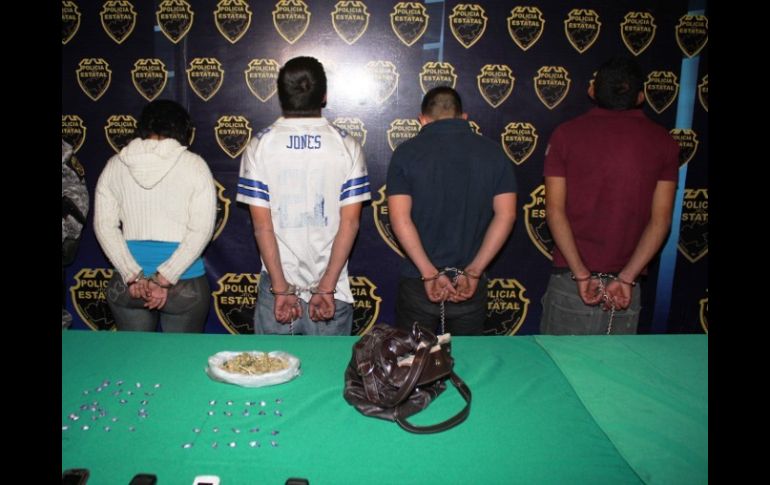 Jalisco | Fueron aprehendido por elelementos de la SSPE; uno es policía municipal Policía Estatal detiene a cuatro presuntos delincuentes en Tequila El grupo fue aprehendido por elelementos de la SSPE; uno de los detenidos es policía municipal de Tequila Por: EL INFORMADOR 6 de febrero de 2013 - 21:01 hs A los cuatro se les aseguraron 50 envoltorios de plástico con droga que se presume es la llamada cristal y 70 gramos de mariguana. / GUADALAJARA, JALISCO (06/FEB/2013).- Un nuevo grupo de presuntos delincuentes del Cártel del Golfo fue aprehendido este miércoles por elementos de la Secretaría de Seguridad Pública del Estado (SSPE); uno de los detenidos es policía municipal de Tequila. Se trata de Esmeralda Alejandra Ávila Arreguin, de 20 años, quien desde el 17 de enero de este año pertenecía a la corporación de seguridad del citado municipio como policía de línea. Según declaró a los medios, su labor al servicio del Cártel del Golfo, también llamado de La Corona, era de halcón, que consiste en alertar a los delincuentes cuando se internaba en el municipio personal de la SSPE o del Ejército. Tras ser cuestionada sobre si hay más elementos en la Policía de Tequila que están coludidos con grupos delictivos, respondió que, aunque conoce a varios compañeros, no sabe si están relacionados. Otro de los detenidos es José Guadalupe Castañeda Mariscal, de 18 años, quien también se dedicaba al "halconeo". Rubén Magallanes García, de 19 años; y Julio César Ladino Torres, de 18, fueron los otros dos aprehendidos. Los cuatro radicaban en Tequila. A diferencia de las tres anteriores detenciones de presuntos integrantes del Cártel de la Corona que suman 20 personas, estos cuatro no tenían armamento en su poder, sino que sólo distribuían droga y alertaban sobre el paso de elementos de otras corporaciones. Los 20 anteriores detenidos, según la SSPE, están relacionados con el asesinato del director de la Policía de Hostotipaquillo, Lucio Rosales Astorga, el 29 de enero pasado. A los cuatro se les aseguraron 50 envoltorios de plástico con droga que se presume es la llamada "cristal", así como 70 gramos de mariguana; y dos vehículos, un Tsuru azul modelo 2002 y un Jetta blanco modelo 2008. Temas Seguridad Secretaría de Seguridad Pública de Jalisco Detenidos en Jalisco Drogas Lee También Detienen a presunto homicida en Lomas de Oblatos Puerto Vallarta es reconocida como la mejor ciudad pequeña de Latinoamérica Suspenden clases en estos 9 municipios de Jalisco ante el paso de tormenta tropical 'Raymond' Pensión Mujeres Bienestar: ¿Cuándo recibirán el primer pago las beneficiarias? Recibe las últimas noticias en tu e-mail Todo lo que necesitas saber para comenzar tu día Registrarse implica aceptar los Términos y Condiciones