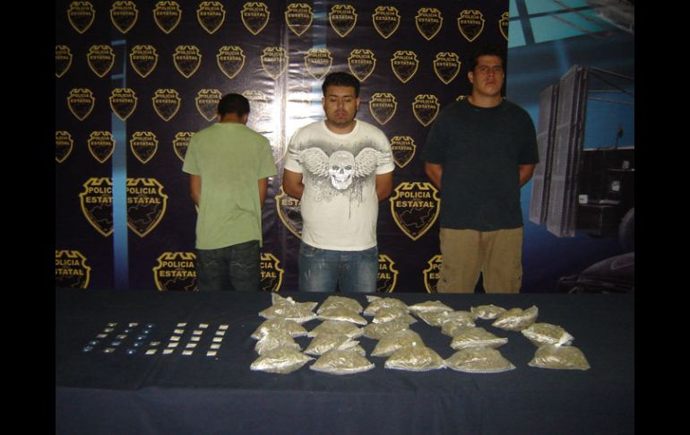 Jalisco | Uno de los detenidos es menor de edad, le decomisaron 700 gramos de marihuana Policía estatal captura a tres por narcomenudeo Uno de los detenidos es menor de edad, le decomisaron 700 gramos de marihuana Por: EL INFORMADOR 10 de octubre de 2010 - 03:20 hs En total, se incautaron 700 gramos de mariguana, 4.5 gramos de cocaína, dos de piedra base y cinco pastillas psicotrópicas. ESPECIAL / TLAQUEPAQUE, JALISCO (10/OCT/2010).- Tres presuntos narcomenudistas fueron detenidos por elementos de la Dirección General de Seguridad Pública del Estado en calles de la colonia Residencial el Álamo. Los hechos se registraron cuando policías estatales realizaban su recorrido de vigilancia por los cruces de Francisco Medina y Lázaro Cárdenas, de la colonia Residencial el Álamo, en el municipio de Tlaquepaque. En ese lugar los uniformados observaron una camioneta marca Nissan Rouge, en color blanco, modelo 2009, con placas de circulación JGJ-2816, del Estado de Jalisco, la cual era abordada por tres sujetos, quienes al percatarse de la presencia policial trataron de retirarse rápidamente del sitio, sin embargo, fueron detenidos calles más adelante por los uniformados, quienes les realizaron una revisión precautoria. Se trata de quien dijo llamarse Bayrón Sanabria Cardona, de 26 años de edad, quien cuenta con su domicilio en la calle Progreso, en Tlaquepaque; le aseguraron un envoltorio de plástico transparente, conteniendo 15 gramos de mariguana. Le sigue Jonathan Ulises Esparza García, de 26 años, quien dijo residir en la colonia Álamo Oriente, a quien le aseguraron 16 envoltorios de plástico, conteniendo 4.5 gramos de cocaína, además de dos gramos de piedra base de cocaína y cinco pastillas psicotrópicas. Asimismo fue retenido un menor de 16 años de edad, a quien le aseguraron 23 envoltorios de plástico transparente, conteniendo 700 gramos de mariguana. Tras la captura, los tres sujetos y la droga fueron puestos a disposición de un Agente del Ministerio Público Federal, quien continuará con las indagatorias correspondientes. Temas Seguridad Detenidos en Jalisco Narcomenudeo Policía del Estado Lee También Presumen reducción de delitos en Jalisco; al alza robo de motocicletas Aseguran armamento y vehículo con blindaje artesanal en Quitupán Viene por la tarde la tormenta a Guadalajara Cierran dos tramos de avenida Juárez por caída de un poste y de ramas Recibe las últimas noticias en tu e-mail Todo lo que necesitas saber para comenzar tu día Registrarse implica aceptar los Términos y Condiciones